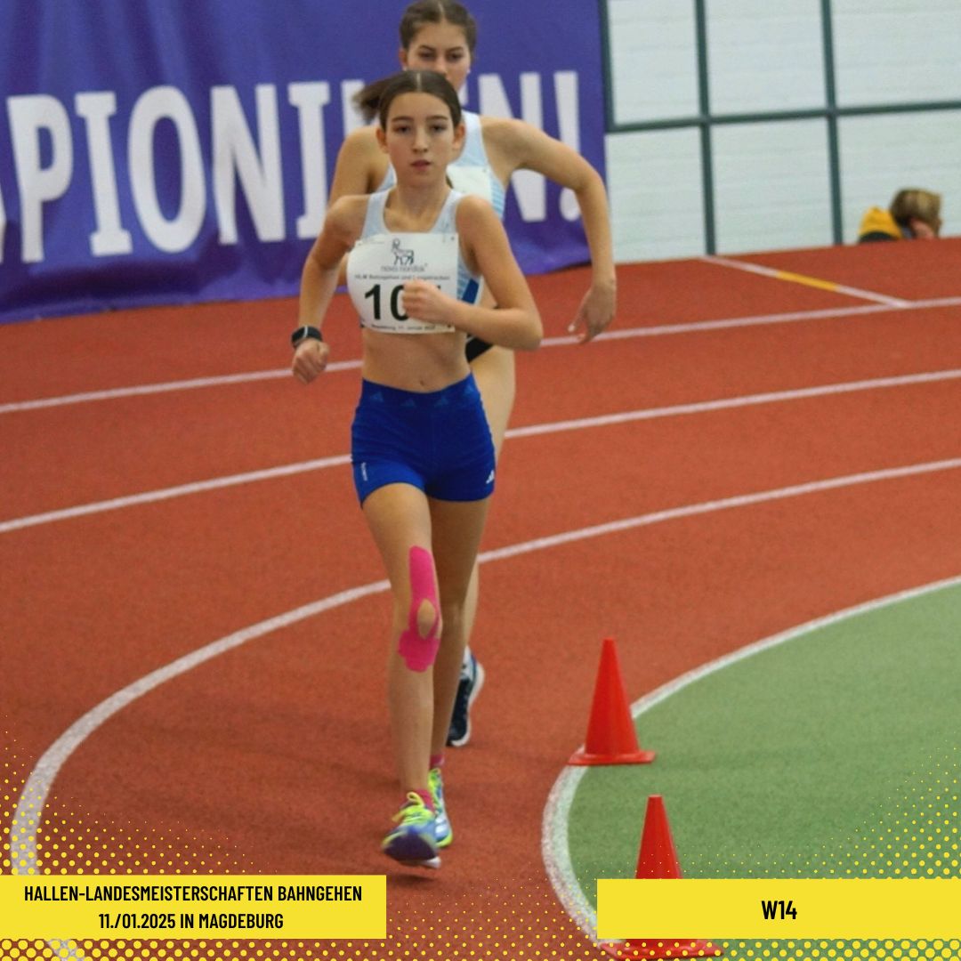 Der 1. Wettkampftag stand weiterhin im Zeichen der Läufer und Läuferinnen sowie Geher und Geherinnen. Hier gewann u.a. den Hallen-Landesmeistertitel Lotta Och vom ASV 1902 Sangerhausen die 3.000 m Bahngehen in der weiblichen Altersklasse 14 in 18:40,02 min. Weiterin lief Mara Simon vom SC Magdeburg über die 3.000 m in der WU18 nach 10:54,65 min über die Ziellinie und somit auf den 1.Platz.