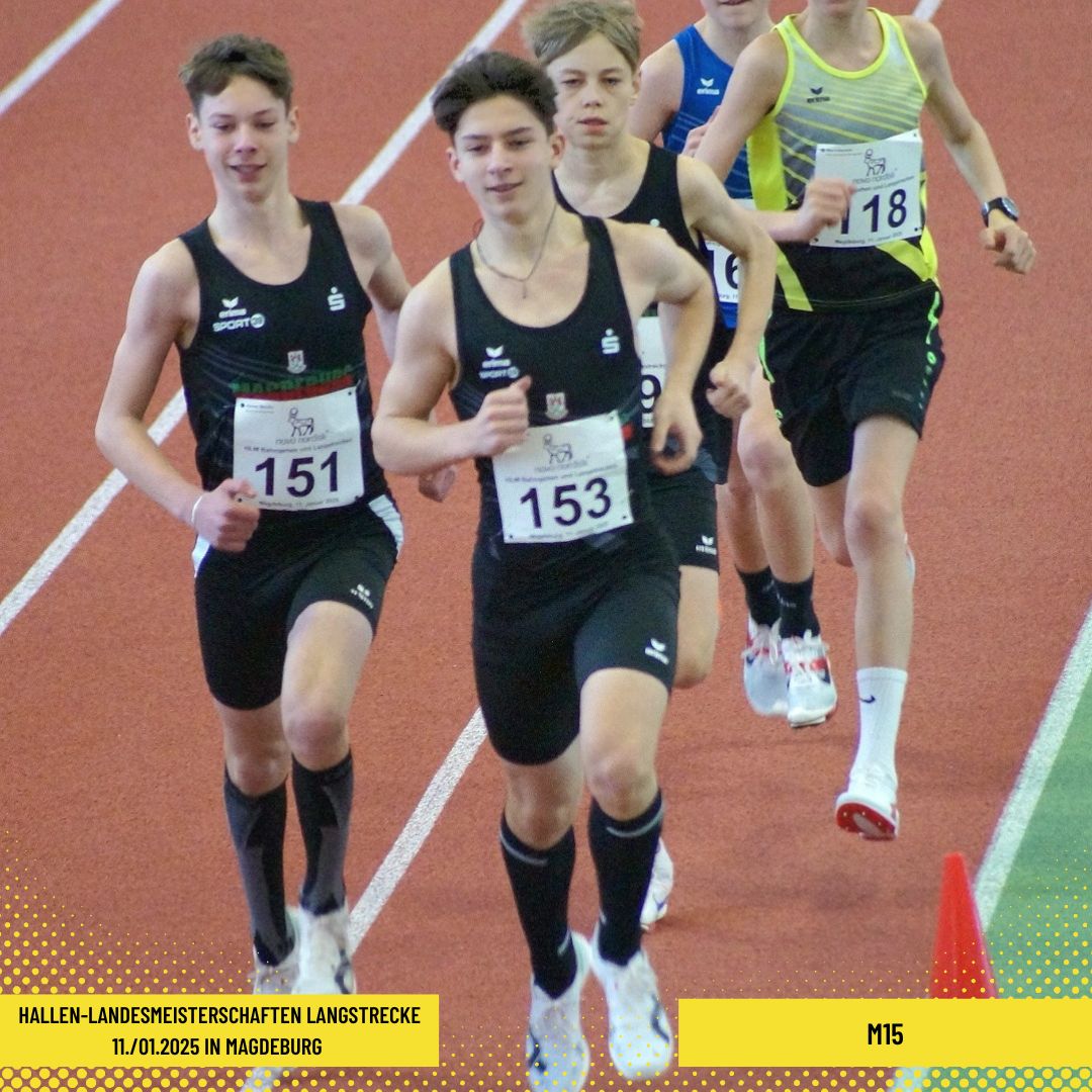 In der M15 sicherte sich über 3.000 m Jonas Melahn vom SC Magdeburg in 09:49,27 min den Hallen-Landesmeisterschaftstitel. Auf Rang 2 lief Adam Tessnow (SC Magdeburg, 09:53,86 min) ein.