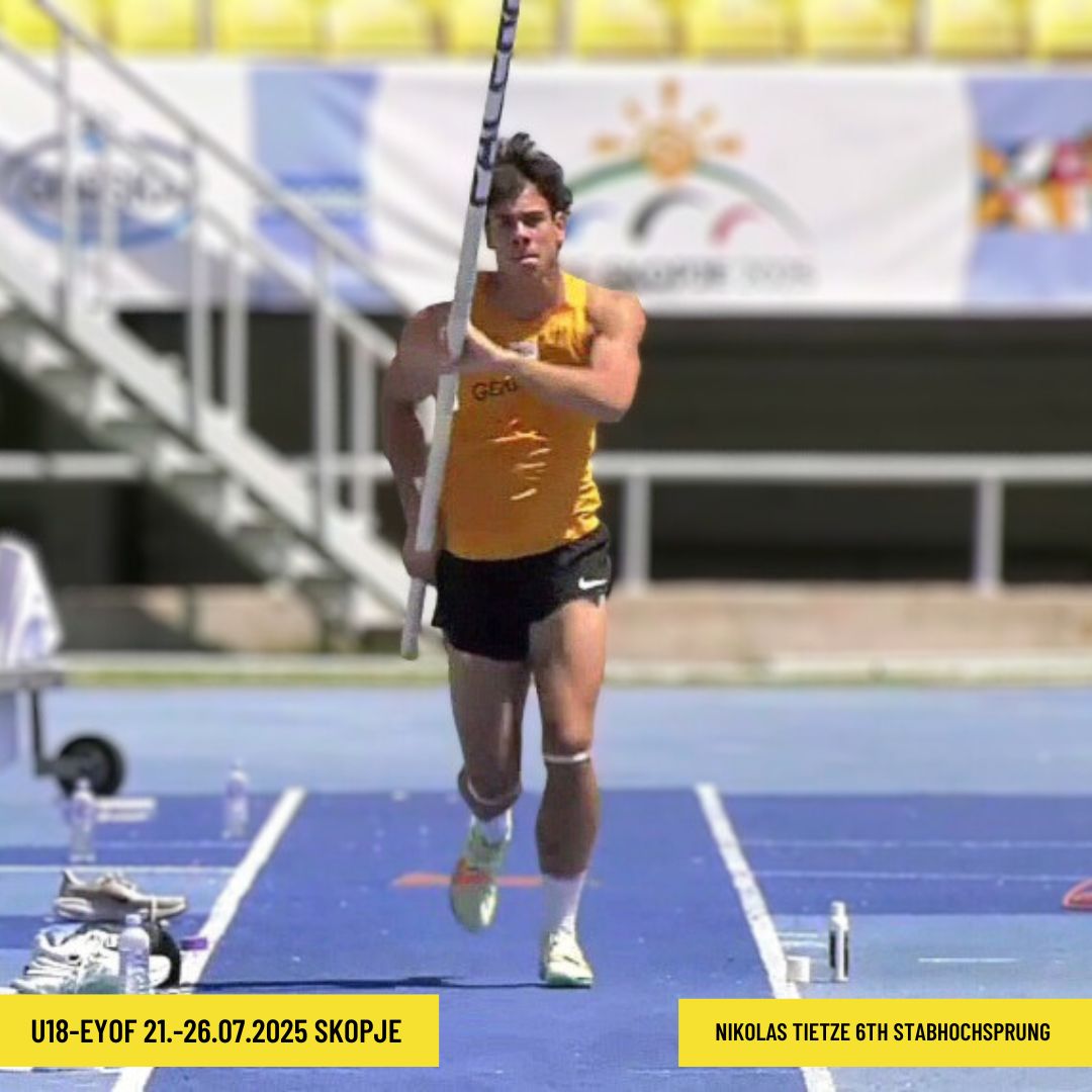 Für die 13- bis 17-jährigen Leichtathleten ging es vom 21. bis 26. Juli 2025 beim 18. Youth Olympic Festival (U18-EYOF) in Skopie (Nordmazedonien) u.a. darum, internationale Wettkampferfahrung im Rahmen eines Multisportevents zu sammeln. In 15 Sportarten konnten sich knapp 3.000 Athleten und Athletinnen mit den besten Europas messen. Das Team Deutschland war hierbei mit 148 Talenten in den Sportarten 3 x 3 Basketball, Badminton, Basketball, Gerätturnen, Handball, Judo, Kanu-Slalom, 28 jungen Leichtathleten, Radsport Mountainbike, Radsport Straße, Schießsport, Schwimmen, Taekwondo und Volleyball vertreten.