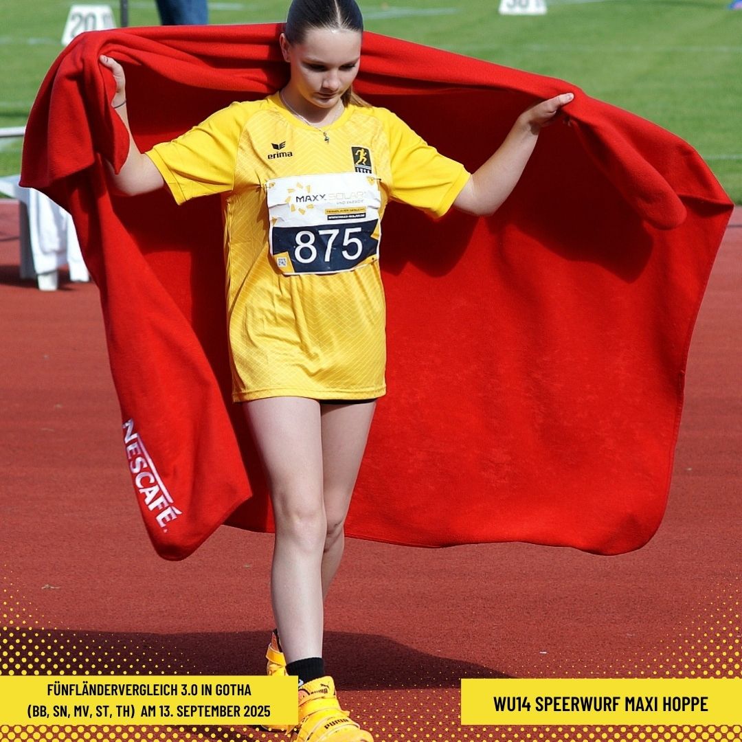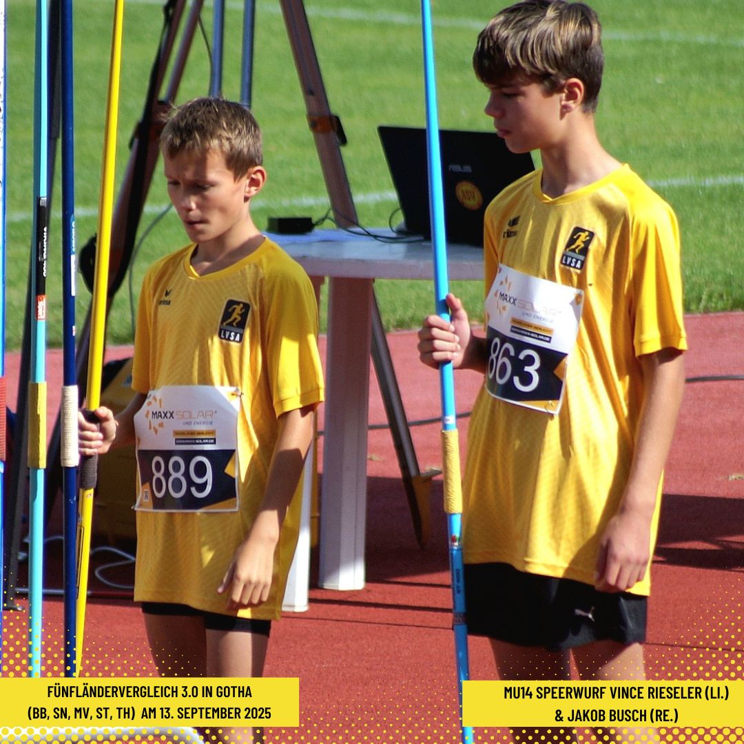Am 13. September 2025 fand die 3. Auflage des U14-Fünfländervergleichs zwischen den Landesfachverbänden Brandenburg, Mecklenburg-Vorpommern, Sachsen, Thüringen und Sachsen-Anhalt, diesmal im Volksparkstadion in Gotha (Thüringen) statt. In den Mannschaften, die zwischen 35-55 Personen stark waren, stellten sich die besten 13- und 12-Jährigen ihrer zum Teil ersten großen, überregionalen Herausforderung. Und so kamen die rund 200 Athleten und Athleteninnen in einem kurzweiligen Wettkampfformat zusammen, welches neben der eigentlichen sportlichen Leistung, eine Platz-Punkte-Wertung führte; ganz im Stile der Team-Europameisterschaften der Großen.