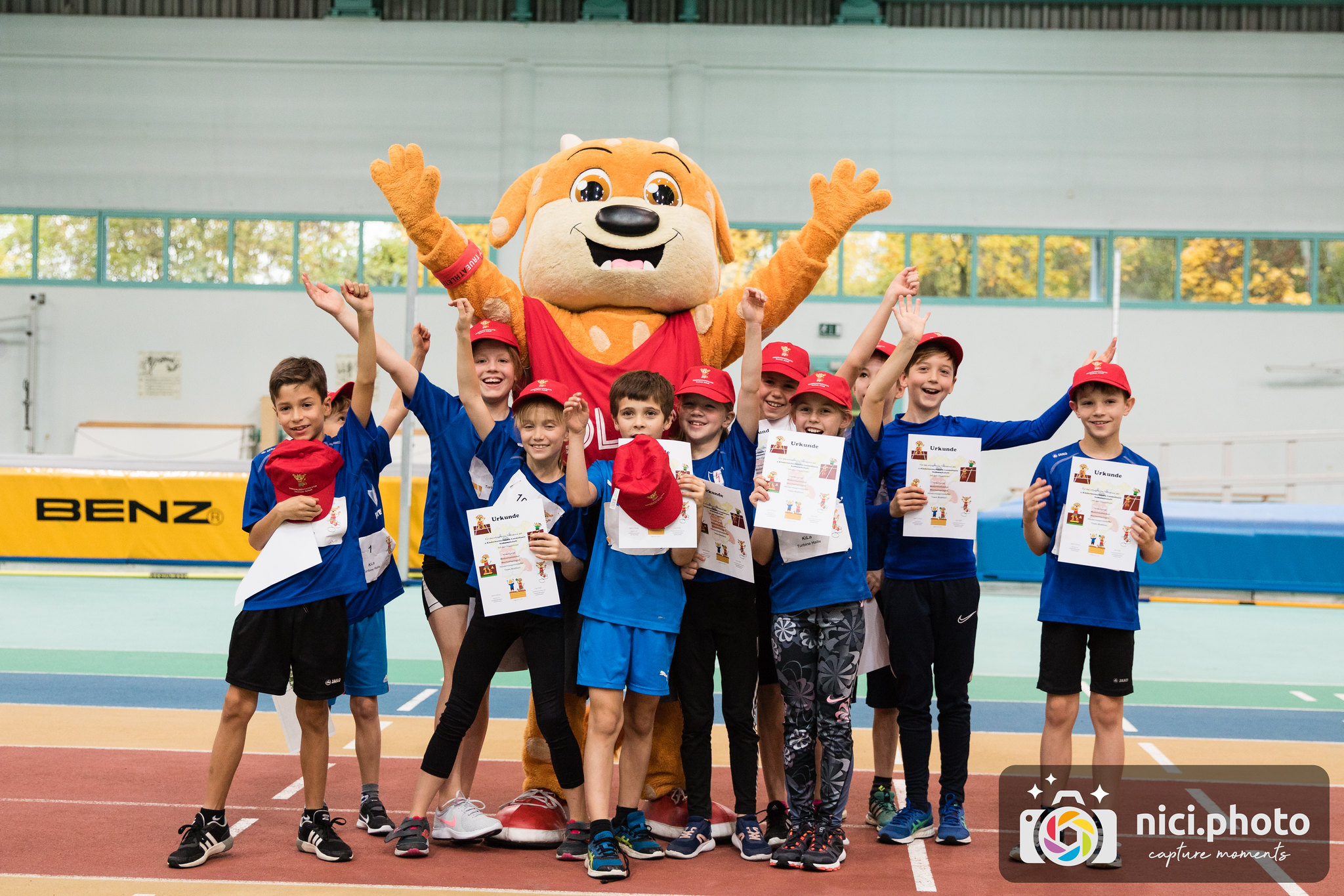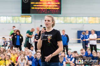 Am Samstag, den 09.11.2019, fand zum zweiten Mal das Landesfinale der AK U10 in der Brandbergehalle statt. Nach einer Ehrung der besten Teams des diesjährigen Regionalcups in den Altersklassen U8 und U10 durch KiLa - Wartin Lina Weiß und Vizepräsident Wettkampforganisation Christian Topf begrüßte die Jugendwartin Sigrid Schwarz die jungen Athleten, Trainer, Eltern, Kampfrichter und Helfer, danach folgte die nun schon traditionelle gemeinsame Erwärmung bei flotter Musik. Wie geplant fiel 10.20 Uhr der Startschuss zur ersten Disziplin. Alle 14 Teams der sieben- bis neun jährigen Kids zeigten ihre erworbenen Fähigkeiten und Fertigkeiten in den Disziplinen 40m-Sprint, Wechselspringen, Medizinballstoßen, Stabspringen (ohne Wertung) sowie in der Hindernissprintstaffel. Unterstützt wurden sie dabei, wie schon im letzten Jahr durch „Jule“, dem Maskottchen der DLV -Jugend, was natürlich für große Freude sorgte. Den Abschluss bildete dann das emotionale Highlight „Teambiathlon“, wo ein letztes Mal gemeinsam um wichtige Punkte gekämpft wurde. Am Ende gab es folgende Reihenfolge an der Spitze: