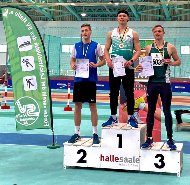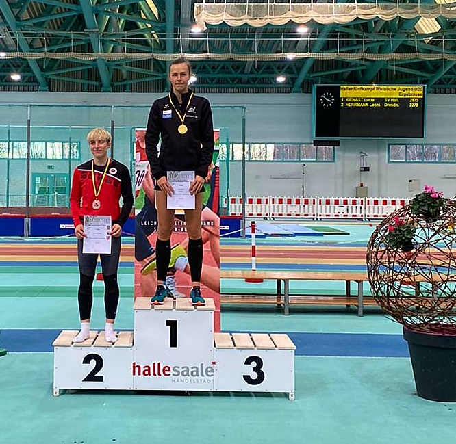 Am 11./12.01.2020 fanden die offenen Mitteldeutschen Hallen-Mehrkampfmeisterschaften in Halle statt. Das kleine, aber feine Teilnehmerfeld wurde dabei von einer gut organisierten Veranstaltung zu neuen persönlichen Bestleistungen getrieben. Ganz vorn dabei agierte die U20-Athletin vom SV Halle, Lucie Kienast (s. Foto), die ihre persönliche Bestpunktzahl im Fünfkampf um fast 300 Punkte auf nun mehr 3.975 Punkte steigerte. Den Grundstein hierfür legte sie unter anderem mit 1,72 Meter im Hochsprung und 6,13 Metern im Weitsprung. Laut leichtathletik.de waren in den vergangenen zehn Jahren nur vier deutsche U20-Athletinnen jemals besser. In der U18 gab es ebenfalls, hier durch Serina Riedel vom TSV Zeulenroda mit 3.806 Punkten ein erstklassiges Resultat. In der U20-Altersklasse sammelte Till Steinforth (s. Foto) vom SV Halle mit 5.139 Punkten die meisten Zähler. Er glänzte insbesondere mit 7,20 im Weitsprung, 8,25 s über die 60 m Hürden und 1,88 m im Hochsprung. In der Männerklasse siegte Lennart Zimmermann (SV Halle) mit 5.097 Punkten. Die Frauenklasse führte Lisa Jung von der LG Göttingen mit 3.243 Zählern an.