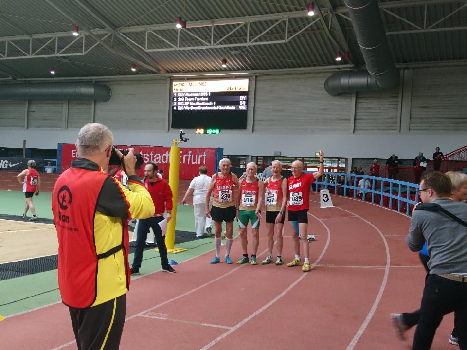 In der Altersklasse M85 wurde Walter Matthes, ebenfalls vom USV Halle, im Hochsprung mit 1,07 m Deutscher Meister. Außerdem errang er einen zweiten Platz über 200 m, welche er in 46,20 s zurücklegte. Weiterhin wurde er im Vorfeld der DHM für die DLV-Auswahl nominiert, über 4 x 200m in der M85 zu starten. Ziel war es, eine Hallenweltbestleistung in dieser Altersklasse aufzustellen. Alle Anwesenden in der Laufhalle in Erfurt unterstützten durch Beifall und Zurufe diesen Lauf. Und tatsächlich haben es die vier Senioren-Athleten in der Besetzung Eduard Bscheid, Herbert E. Müller, Walter Matthes und Helgo Staack in 02:57,32 min geschafft. Dafür wurden sie gebührend gefeiert.