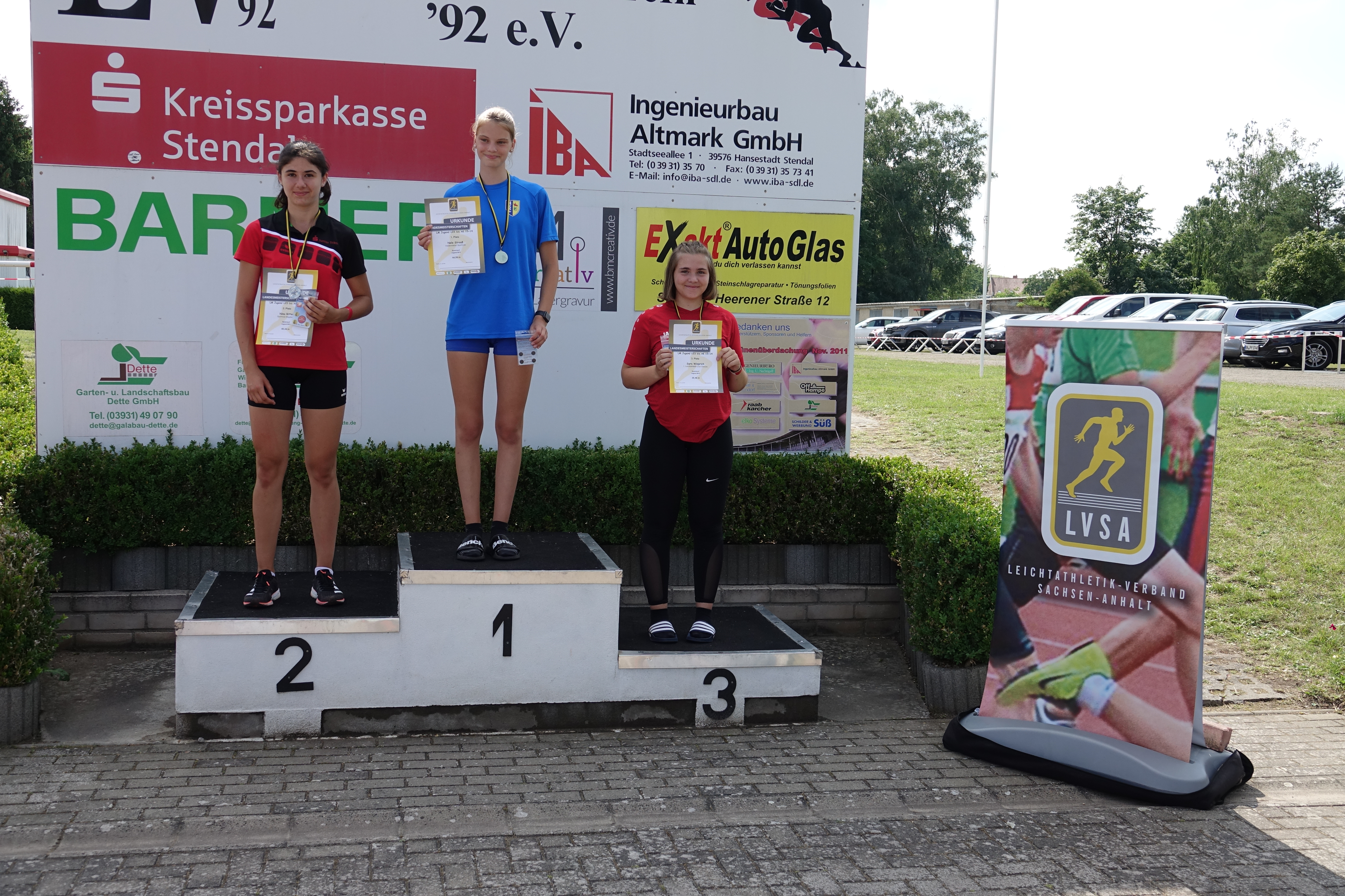 Über die 300 m Hürden stellte Emmy-Lisanne Steinbrecher vom SC Magdeburg eine neue Bestleistung in der W15 auf. Mit 45,15 s sicherte sie sich ihren Landesmeistertitel vor Clara Schiller (Haldensleber SC), die in 46,39 s ebenfalls eine neue persönliche Bestleistung erzielte und neben den 800 m nun auch über die 300 m Hürden für die DM U16 in Hannover planen kann.