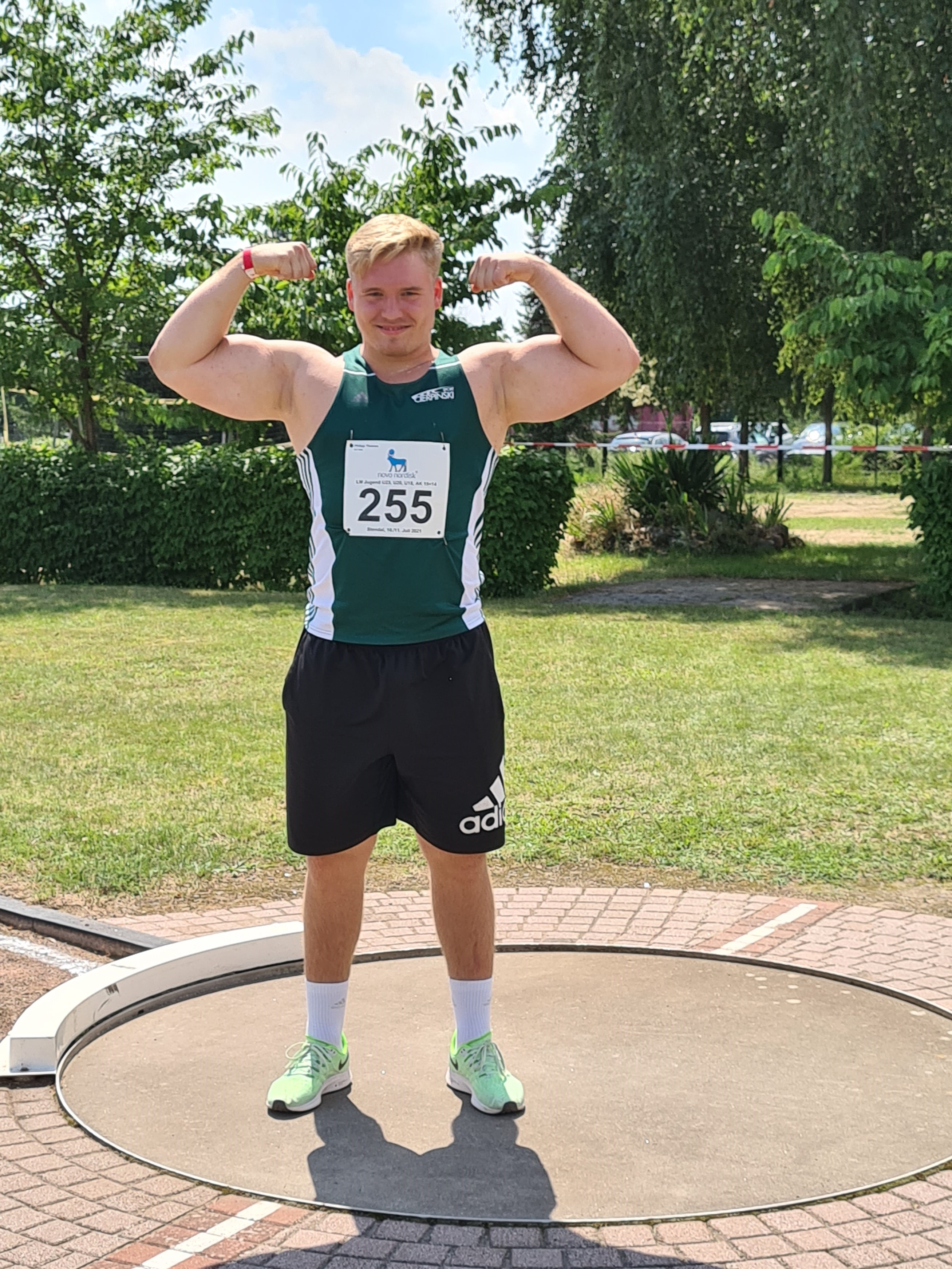 Am 1. Wettkampftag war es vorallem Philipp Thomas vom SV Halle der seinem Frust über die fehlenden 4 cm beim Qualifikationswettkampf der Kugelstoßer für die U20 EM vor einer Woche in Mannheim nun förmlich herausdrehte. Im 2. Versuch setzte er mit 19,36 m nicht nur eine neue Bestweite in den Sand, sondern zugleich eine Duftmarke in Richtung Deutsche U20 Meisterschaften in Rostock. Auch alle vier folgenden Versuche landeten jenseits der Qualifikationsweite für die U20 EM und U20 WM von 18,50 m (18,86; 18,95 m; 19,08; 19,30 m). Damit könnte er durchaus noch eine Rolle im Qualifikationsverfahren für dir ausstehende U20 WM in Nairobi spielen.