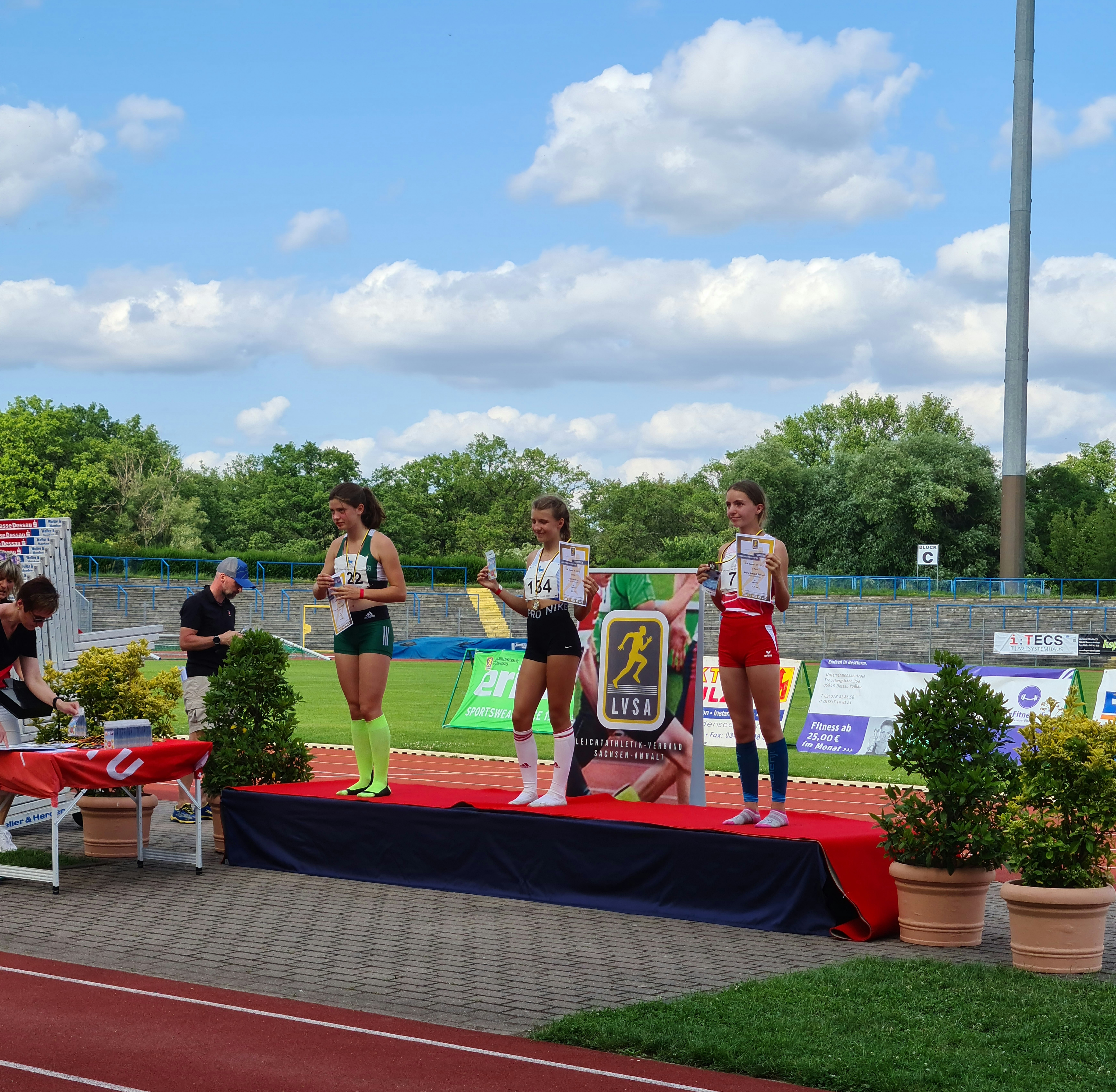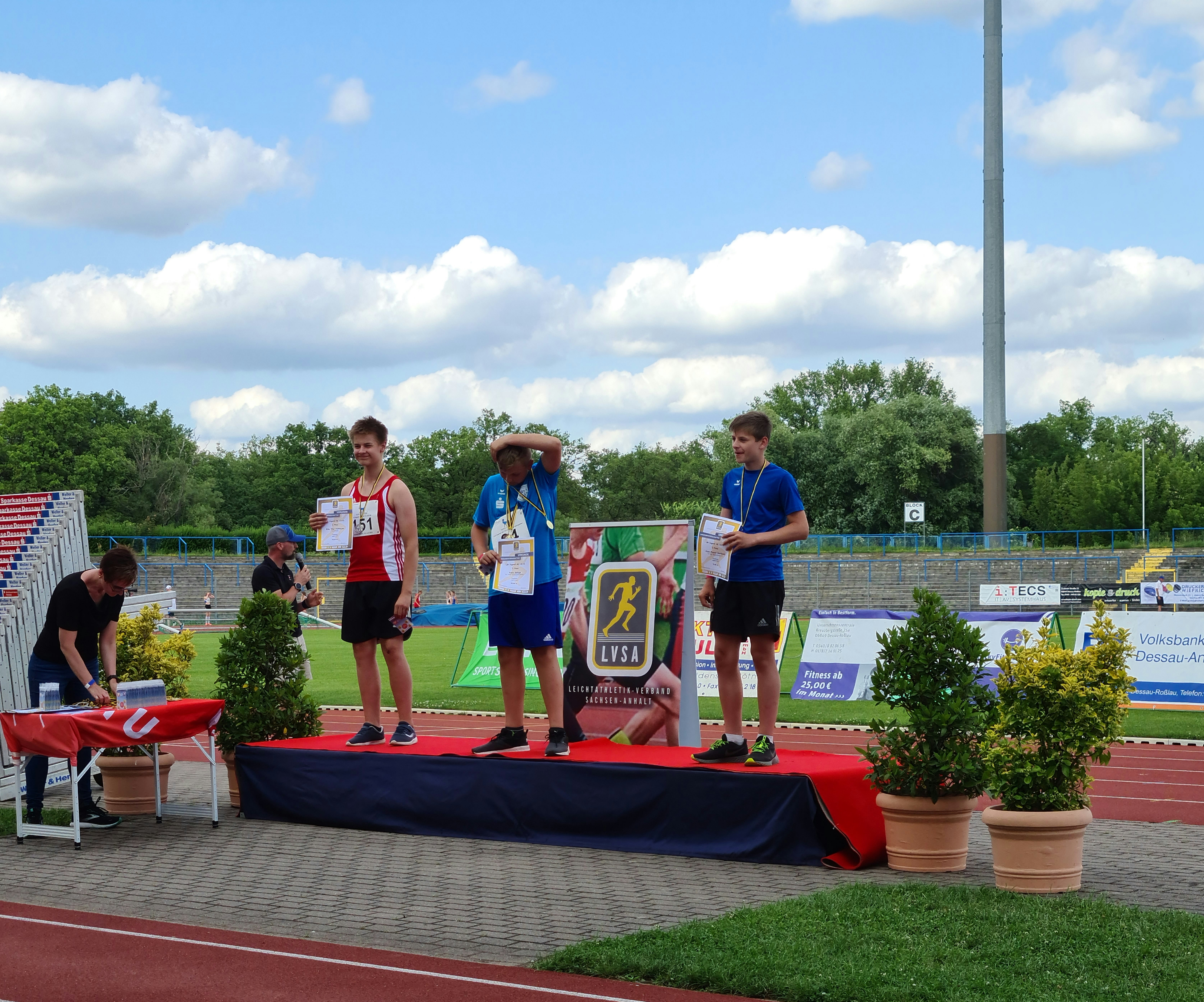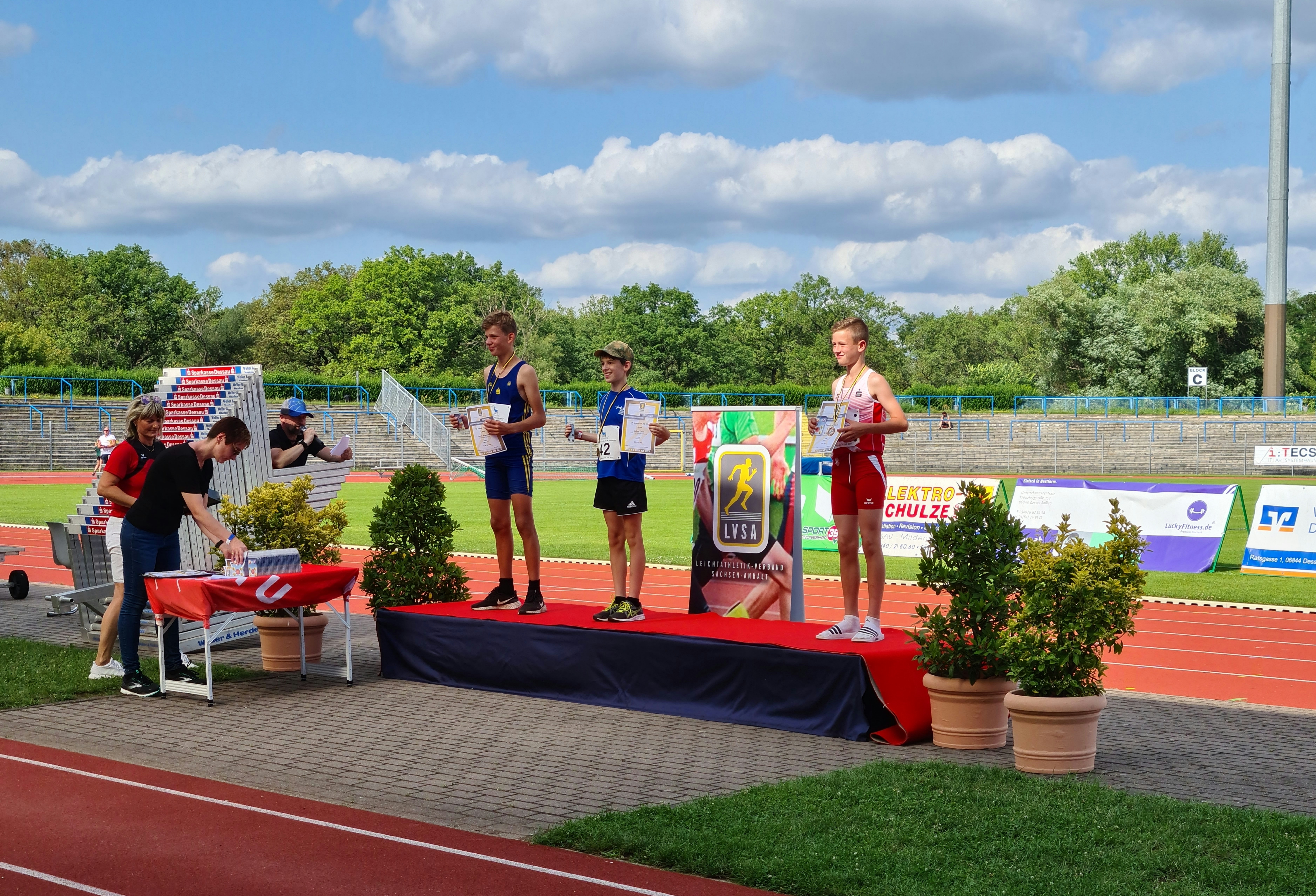 Am 18.07.2021 fanden im Paul-Greifzu Stadion in Dessau-Roßlau die Landesmeisterschaften (LM) der Altersklassen 12 und 13, als auch die LM im Bahngehen der U16 - U20 statt. Der Wettergott meinte es erneut sehr gut und auch die Wettkampfstätten waren wieder bestens vorbereitet, sodass es den Athleten*innen scheinbar an nichts fehlte. Diese dankten es dem ausrichtenden Vereinsmitgliedern, Helfern und Kampfrichtern des 1. LAC Dessau postwendend mit zwei neuen Landesrekorden.