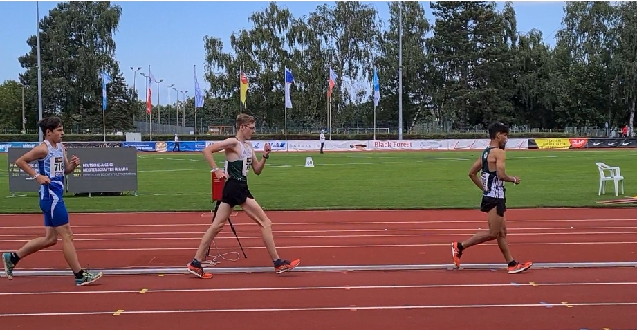 Am ersten Wettkampftag (30.07.2021) eröffneten die beiden SV Halle Geher Jassam Abu El Wafa und Arvid Kockel die Medaillenausbeute, hier über 5.000 Meter im Bahngehen in der MU18 und zeigten mit Platz 2 und 3 einen spannenden Wettkampf. Jassam wurde deutscher Vizemeister in 22:53,16 min vor Arvid Kockel, der 23:46,92 min benötigte.