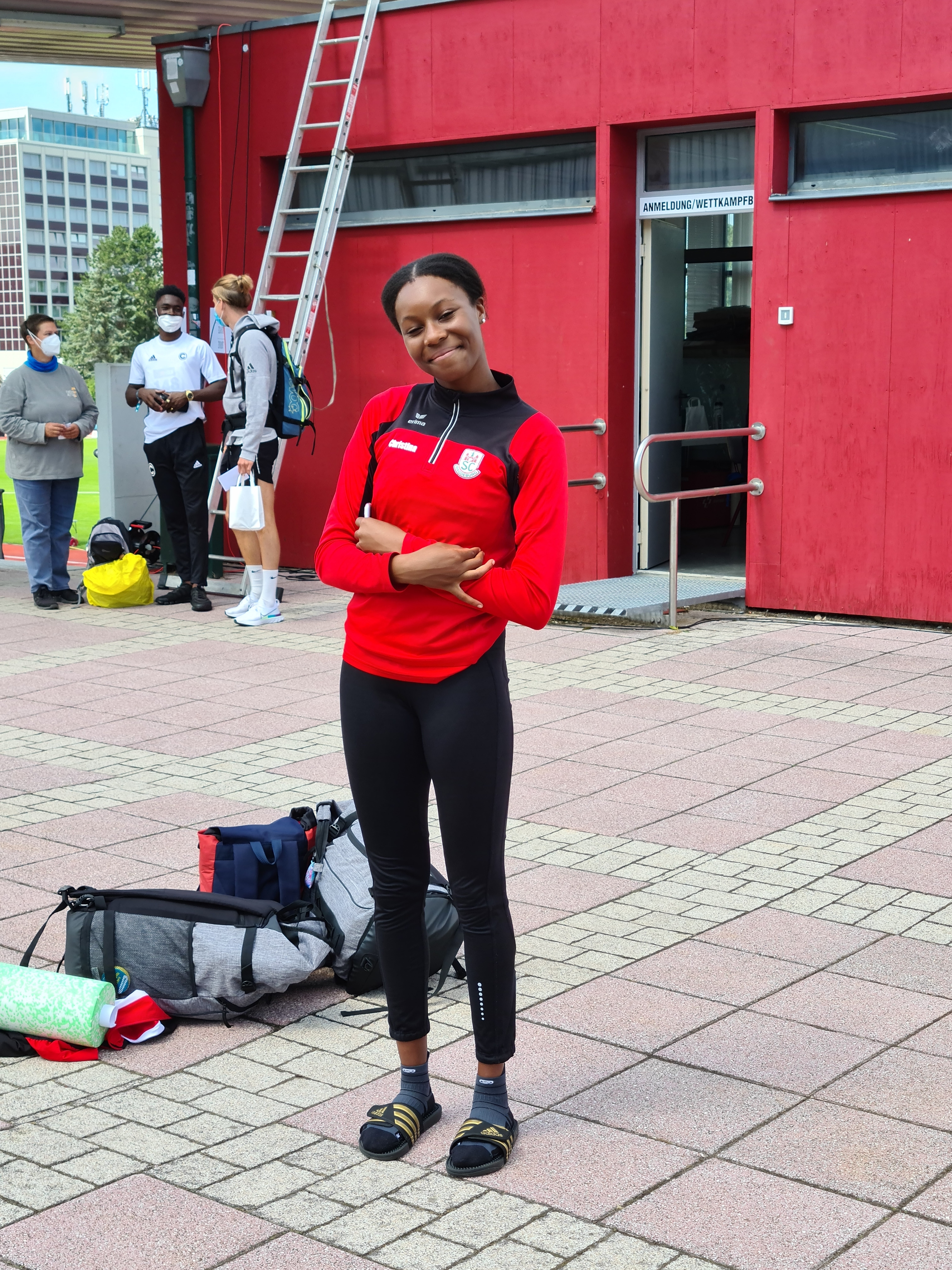 Kurze Zeit später gelang Christina Onwu-Akomas vom SC Magdeburg über die 100 m Hürden in der WU18 der 3. Platz. In der Zeit von 13,60 s (welcher zeitgleich mit Rang 2 gestoppt wurde) war sie sichtlich zufrieden und glücklich.
