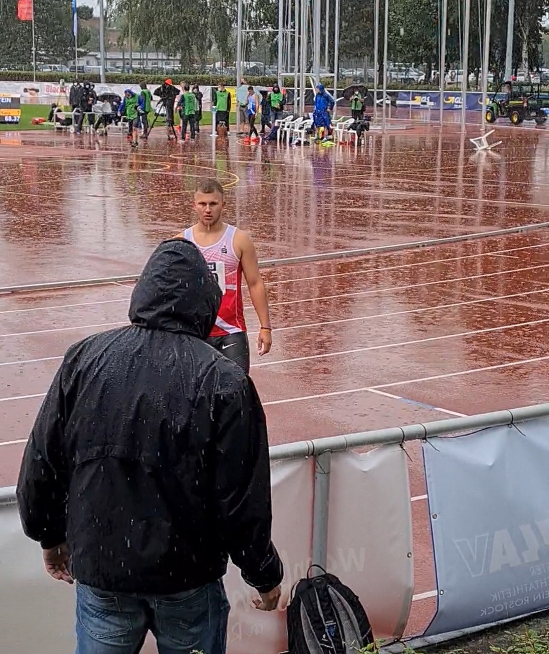 Moritz Morstein vom SC Magdeburg warf sich, trotz böiger Windbedingungen und strömendem Regen in einen Weitenrausch in der MU20. Lokalmatador Eric Frank vom 1. LAV Rostock legte mit 67,57 m ein ordentliches Pfund vor, was es nun, trotz regennasser Anlaufbahn, zu überbieten galt. Im dritten Versuch nahm der Speer von Moritz Fahrt auf und landete schließlich bei 68,37 m. Damit rehabilitierte er sich gleichzeitig für sein frühzeitiges Ausscheiden bei der U20 EM in Tallinn. Sein Trainingskollege Jeremy Bruer (SC Magdeburg) belegte mit 55,80 m Rang 5.