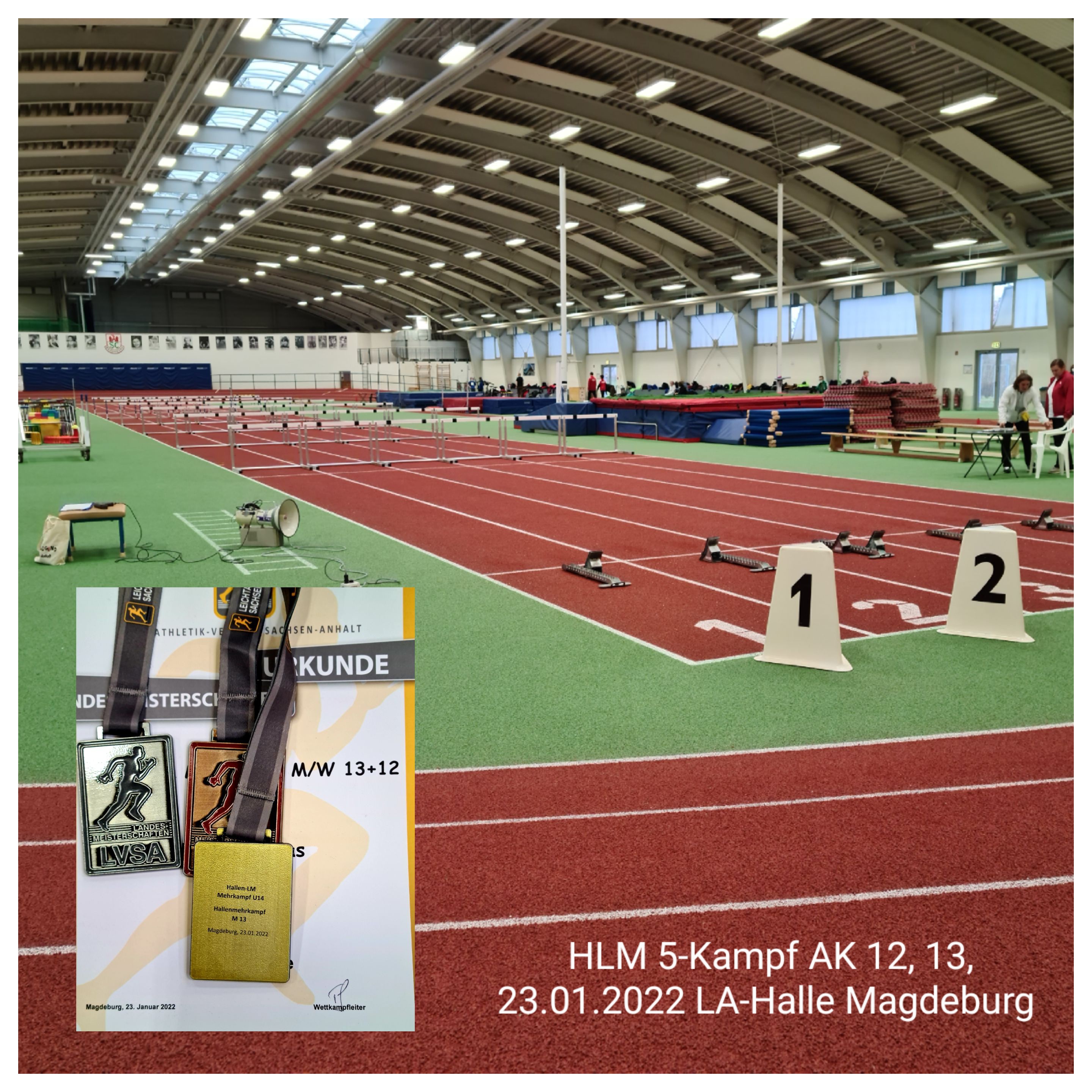 Einen Tag nach der Hallen-Landesmeisterschaft der Männer und Frauen, sowie der U18-Athleten*innen in Halle fanden die Hallen-Landesmeisterschaften der Altersklassen 12 und 13 im Fünfkampf in Magdeburg statt (23.01.2022). Hierbei stellte sich eine übersichtliche Teilnehmerschar von 88 jungen Athleten*innen aus 15 Vereinen der vielseitigen Herausforderung.