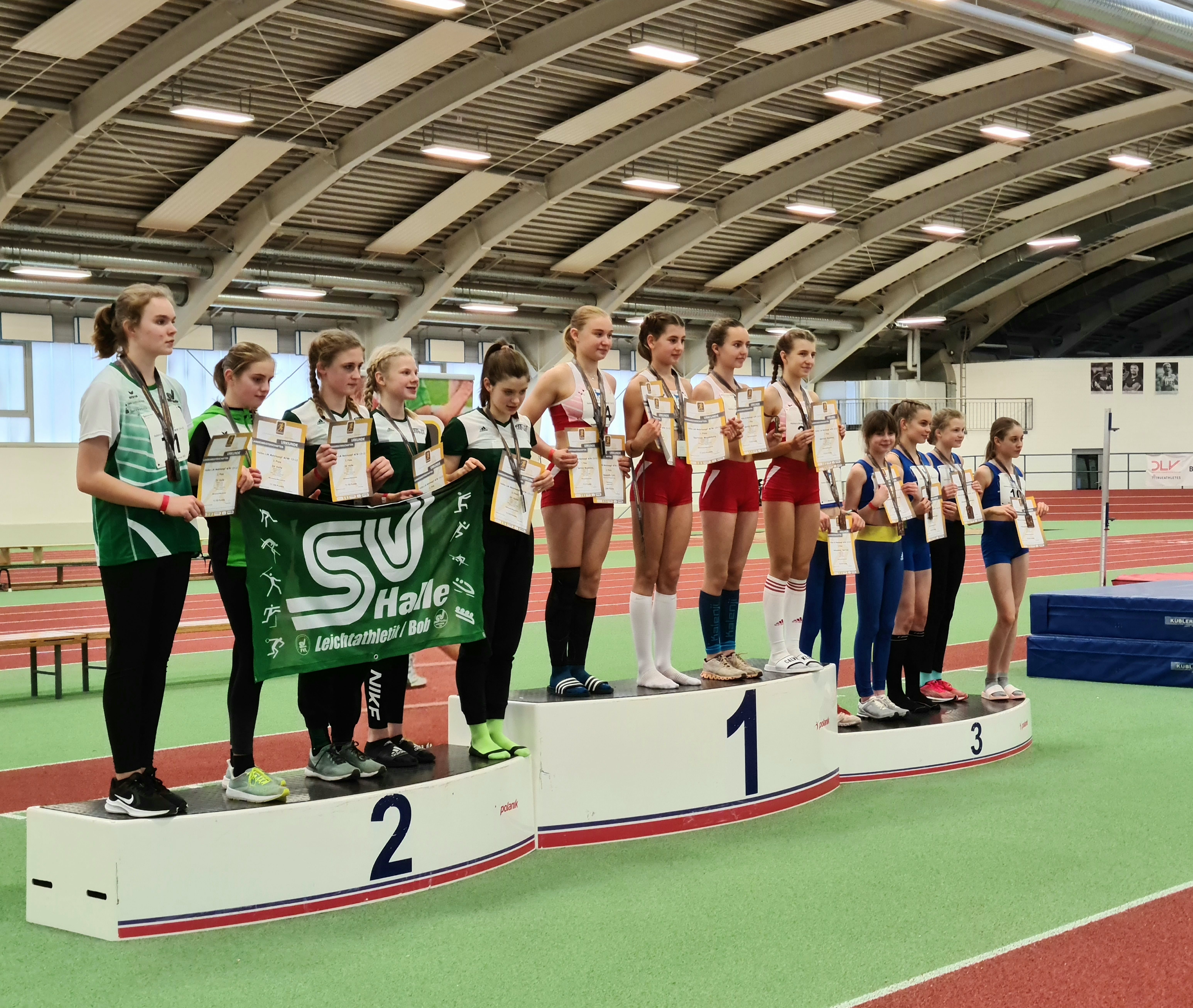 Die W12 Konkurrenz gewann Marla Krause vom SC Magdeburg mit 2.253 Punkten. Sie zeigte u.a. über die 60 m Hürden einen blitzsauberen Lauf und lief nach 10,48 s ins Ziel. Auf Rang zwei sortierten sich knapp hintereinander die ehemalige Zeitzerin Giselle Grosser vom SV Halle mit 2.161 Punkten und Laura Trittel vom PSV Gardelegen mit 2.156 Punkten ein.