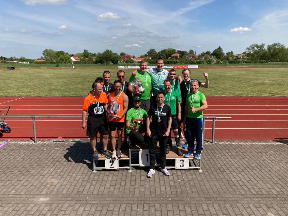 Im nicht ganz so weit entfernten Regis-Breitingen (Sachsen) wurde am 14.05.2022 die offene Landesmeisterschaft TEAM Senioren ausgetragen. Hier trat die Startgemeinschaft Halle Express in der Altersklasse M30/35 an. Daniel Gäbler, Peter Haberland, Tino Hanke, Martin Herzberg, Max Schöppe, Jörg-Uwe Sparenberg, Maik Voigt und Thomas Wagner erkämpften sich hier mit 8609 Punkten den ersten Platz und qualifizierten sich somit für die Team- DM am 10.09.2022.