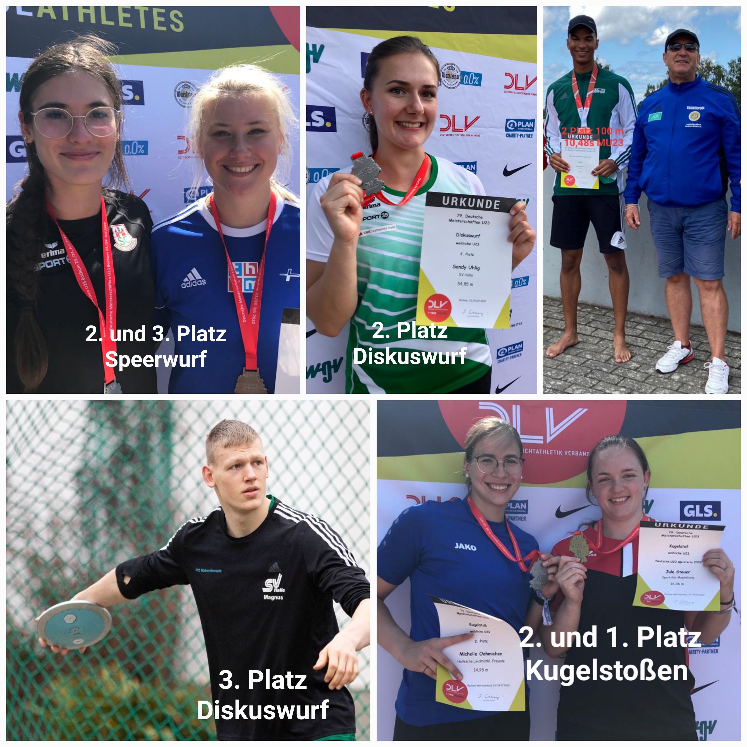 Diese verkauften sich so teuer, wie möglich, allen voran Jule Steuer vom SC Magdeburg. Sie gewann ihren Kugelstoßwettkampf mit 16,36 m, vor Michelle Oehmichen von den Halleschen LA-Freunden, die 14,95 m stieß. Tags zuvor hatte bereits Sandy Uhlig vom SV Halle mit ihrem Vizemeistertitel im Diskuswurf für einen gute Wettkampfstart gesorgt. Sie warf 54,85 m. Auch Julien-Kelvin Clair vom SV Halle durfte sich die Silbermedaille umhängen lassen. Er sprintete die 100 m in persönlicher Bestzeit von 10,48 s. Im Speerwurf der Damen gab es ebenso eine Silbermedaille zu feiern, Lea Wipper vom SC Magdeburg warf ihr Arbeitsgerät bei schwierigen Windbedingungen diesmal auf 52,83 m.