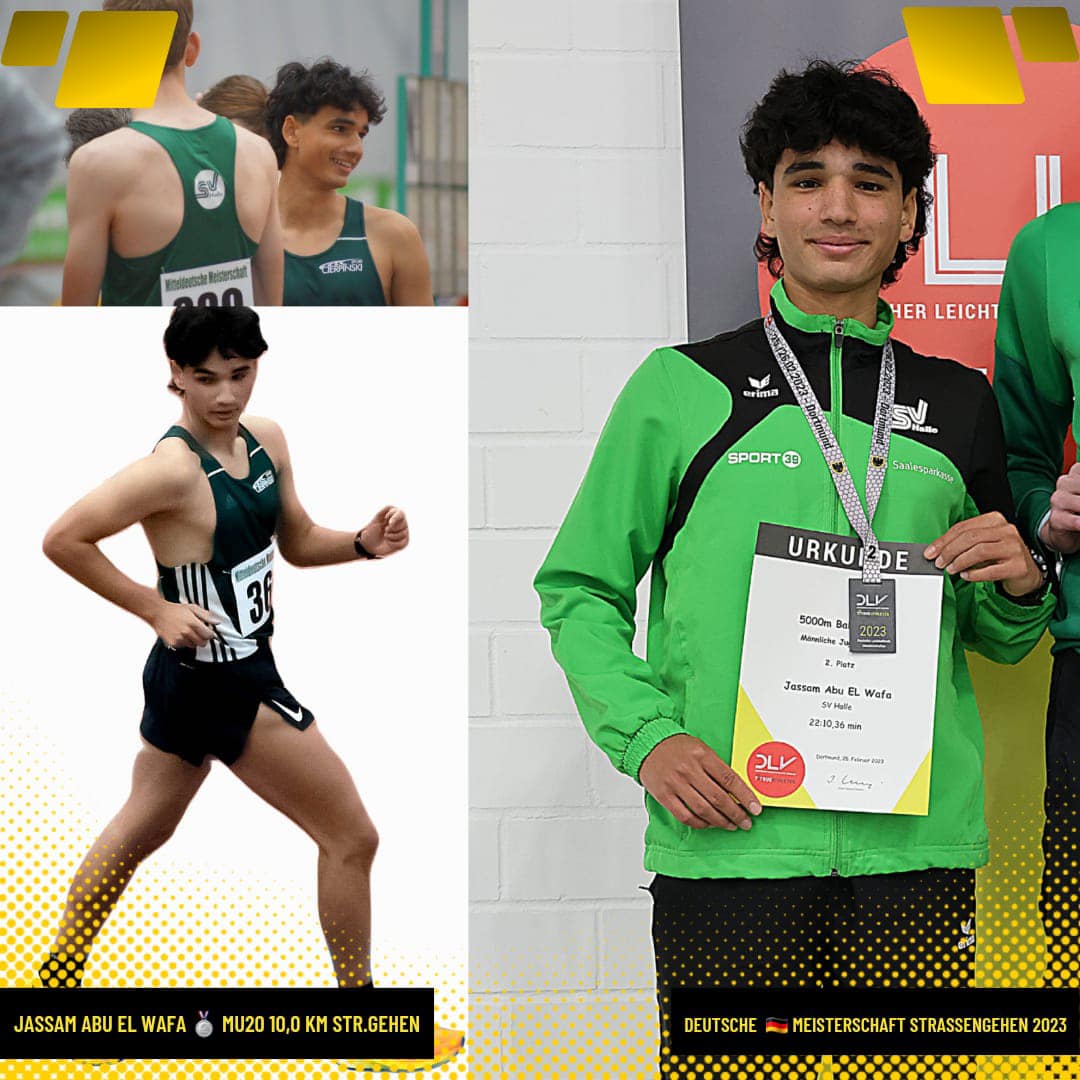 Am 15.April 2023 fanden die Deutschen Meisterschaften im Straßengehen in Thüringens Landeshauptstadt Erfurt statt. Bei wolkenverhangenem Himmel ging Jassam Abu EL Wafa vom SV Halle in der MU20 über 10,0 km auf den 2. Platz. Seine Zeit betrug 44:22 min. Sein Vereins- und Trainingspartner Arvid Kockel musste seinen Start krankheitsbedingt kurzfristig absagen.