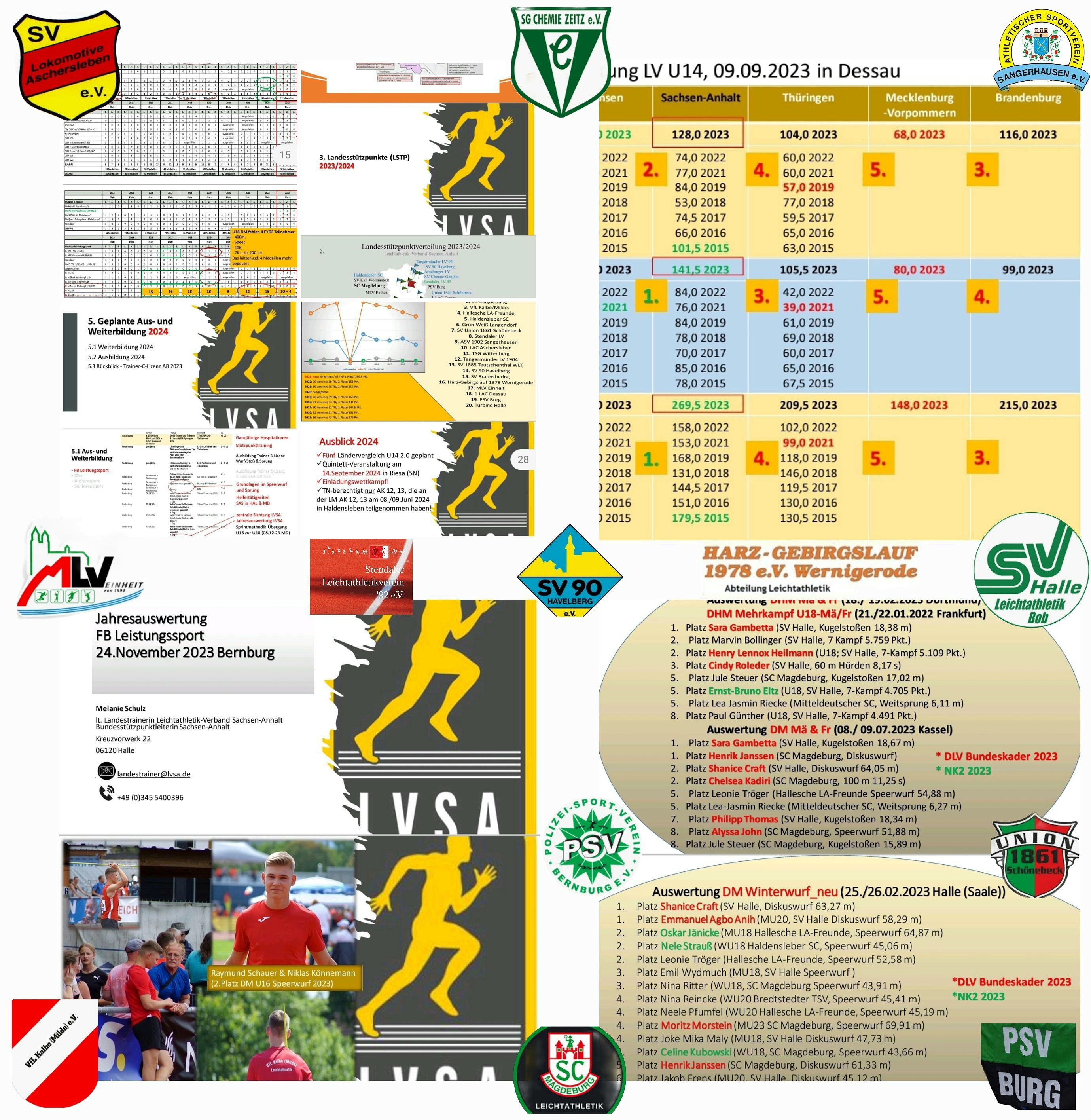 Die LVSA-Jahresauswertung zum Trainings- und Wettkampfjahr 2023 des Fachbereiches Leistungssport fand an traditioneller Stelle erneut beim PSV-Bernburg am 24. November 2023 statt. Trotz einer Vielzahl krankheitsbedingter Absagen, zeigten sich die anwesenden Trainer und Trainerinnen, u.a. der Landes- und Talentstützpunkte interessiert und aufmerksam, zu dem was war und dem was kommen könnte. Innerhalb der Auswertung wurden u.a. das Neu-Format Fünfländervergleich der U14-Jährigen, die Neu-DM Winterwurf U18-Aktive, die internationalen und nationalen Wettkämpfe sowie der Landeskader-Lehrgang 2023 analysiert. Der Dank gilt insgesamt den Athleten und ihren gezeigten Leistungen, als auch auch den Machern hinter den Kulissen, hier den Trainern und Trainerinnen sowie Eltern.