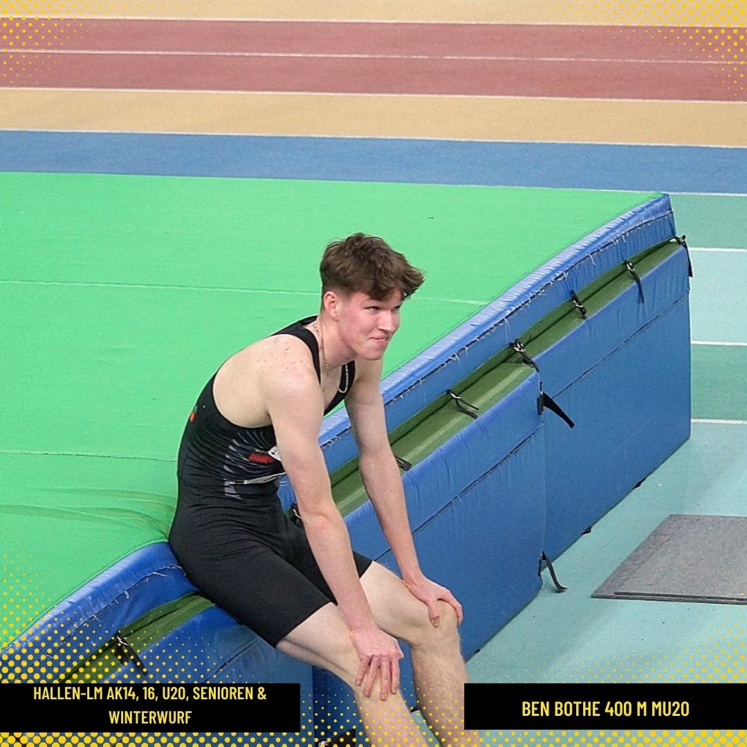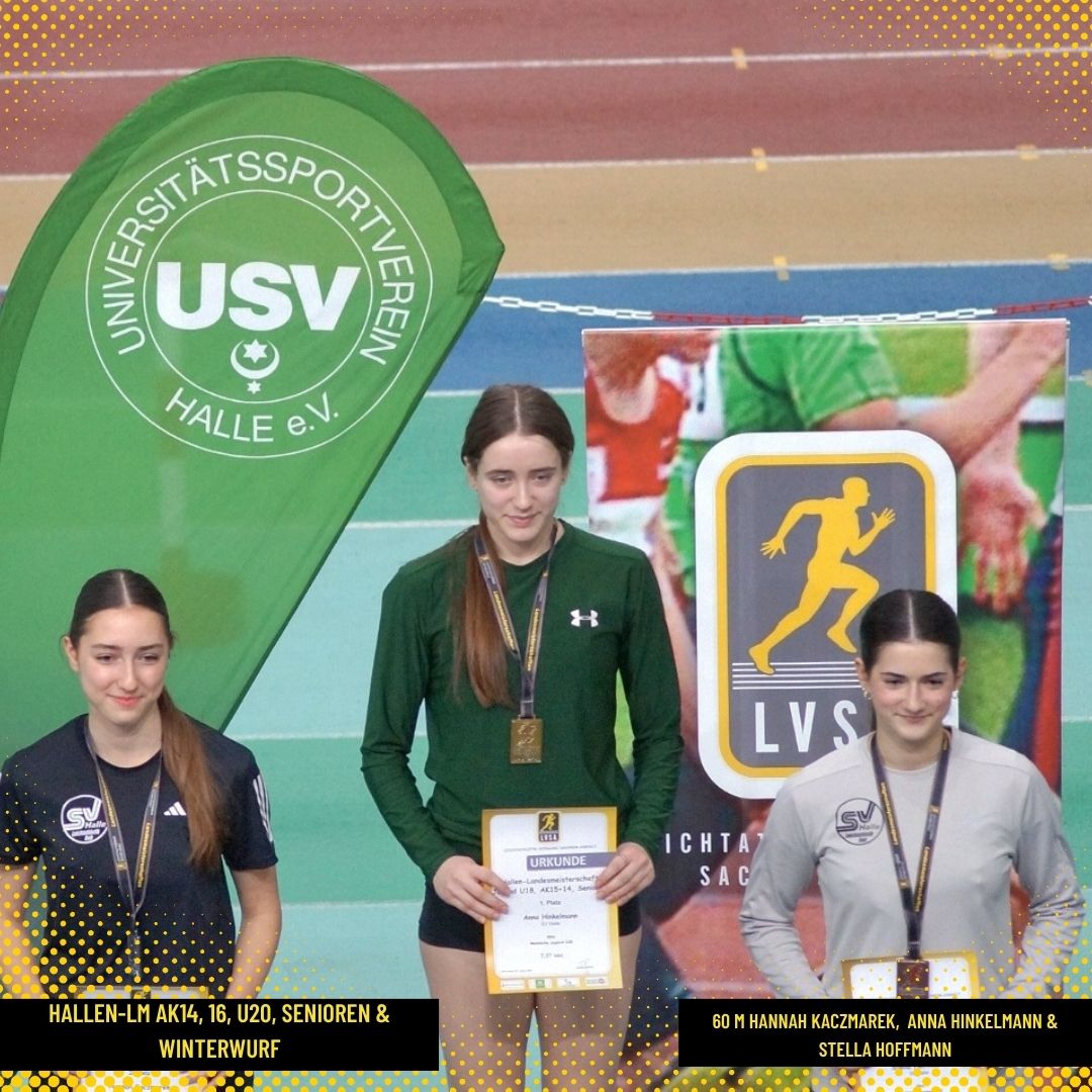 In der weiblichen U20 gelang Anna Hinkelmann über die 60 m Hürden in 8,91 s eine neue Bestzeit. Und auch über die 60 m lieferte sie eine blitzsaubere Leistung in flotten 7,57 s ab (PB). Dicht dahinter flogen, die noch in der U18 startberechtigten Hannah Kaczmarek in 7,61 s (PB) und Stella Hoffmann heran (7,77 s VL, alle SV Halle). Und last but not least sprintete Anna über die 200 m ebenso in Bestzeit, hier 24,81 s zum Sieg.