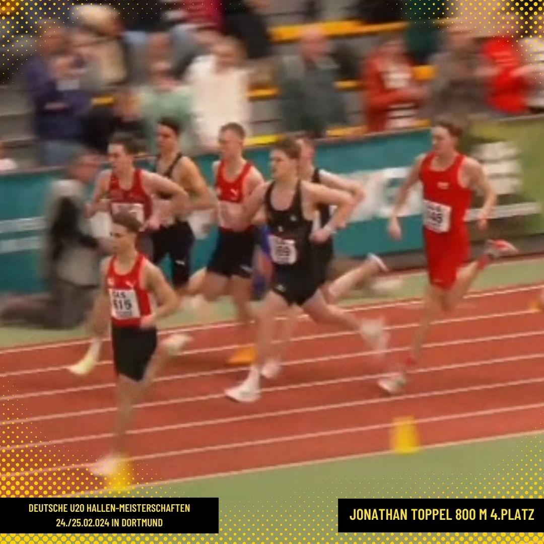 Einen weiteren undankbaren 4. Platz erlief sich Jonathan Toppel vom SC Magdeburg über 800 m in 01:53,51 min. Er war als Zeitschnellster nach Dortmund angereist, musste aber der älteren Konkurrenz noch den Podest Vorrang lassen. Til Stephan von den Halleschen LA-Freunden nutzte als jüngster im Feld (BJ 2007) die 1.500 m, um wichtige Erfahrungen in der U20 zu sammeln. Er belegte in 04:09,04 min Rang 14. Auch Janis Sczepanek vom VfL Kalbe Milde nutzte die Gunst der Meisterschaftsstunde, um weitere Erfahrungen, hier über die 60 m Hürden zu tätigen. In 8,46 s kam er dicht an seine persönliche Bestleistung von 8,41 s heran.