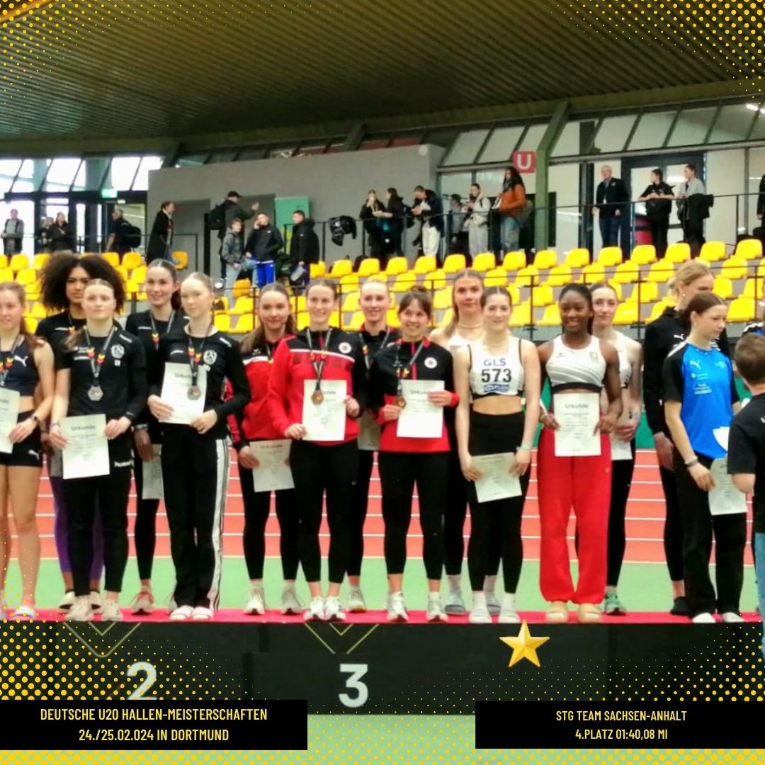 Neben den den Deutschen Meisterschaften im Winterwurf in Halle (Saale) fanden parallel am 24./ 25. Februar 2024 die Deutschen U20-Hallenmeisterschaften in Dortmunds Helmut-Körnig-Halle statt. 16 junge Athleten und Athleteninnen aus Sachsen-Anhalt aus vier Vereinen waren dem Ruf der Meisterschaft gefolgt, um Weiten, Zeiten und wertvolle Platzierungen zu erzielen.