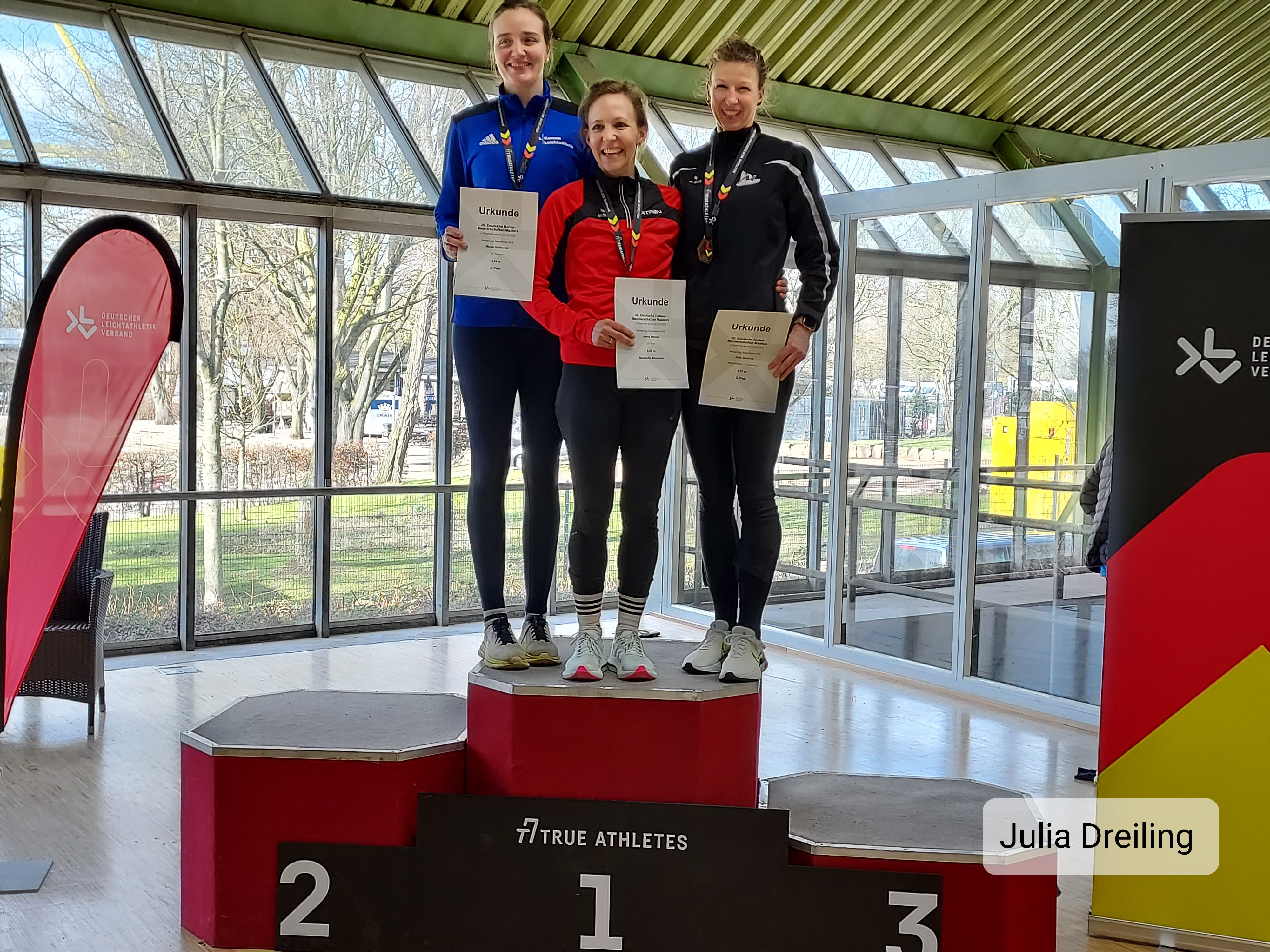 Den jeweils dritten Platz erkämpften sich Katrin Friedrich vom PSV Burg im Stabhochsprung der W45 mit 2,30m, Yvonne Brandecker vom HGL Wernigerode über die 1500m der W45 in 5:23,22 min sowie Julia Dreiling im Weitsprung der W35 mit 4,77m.
