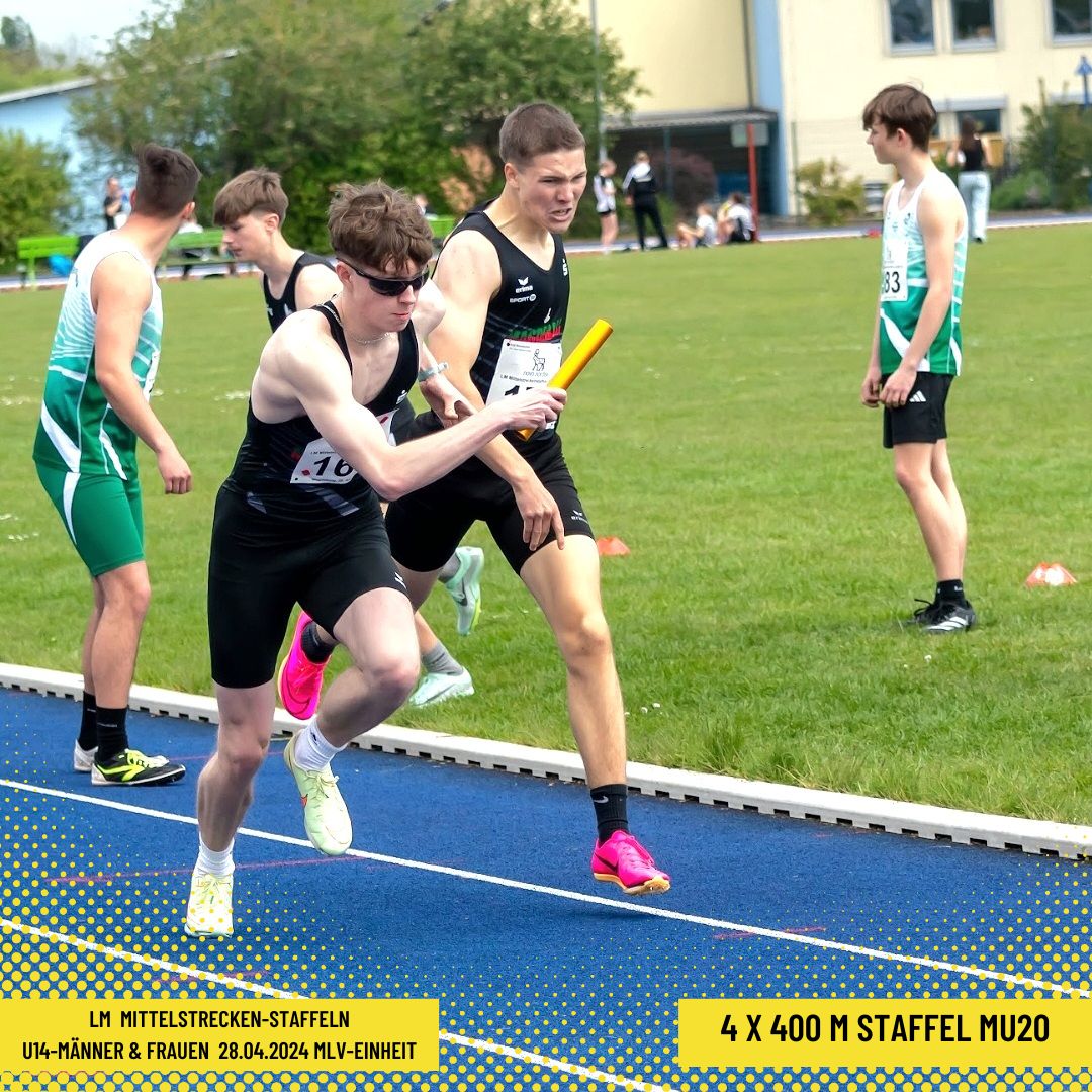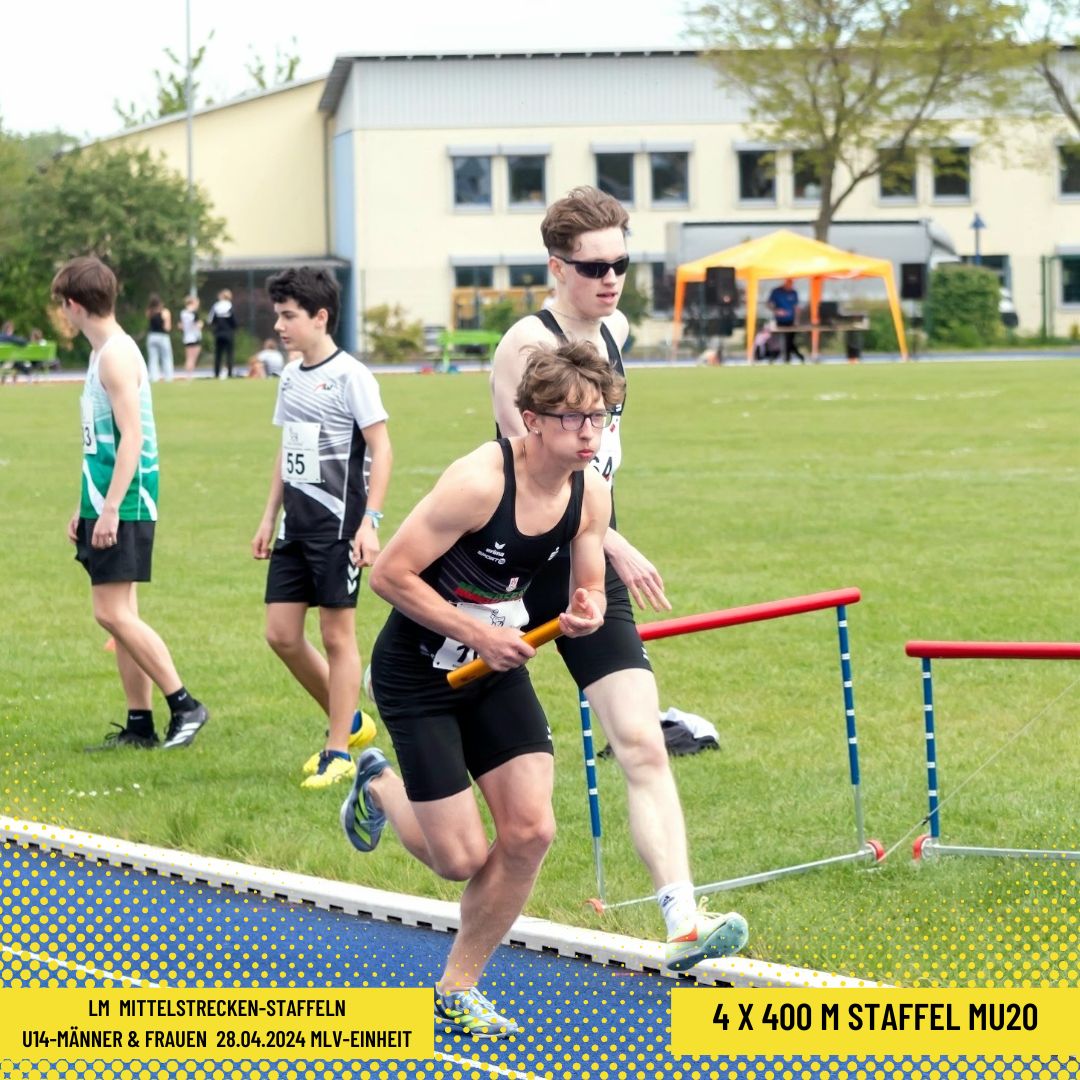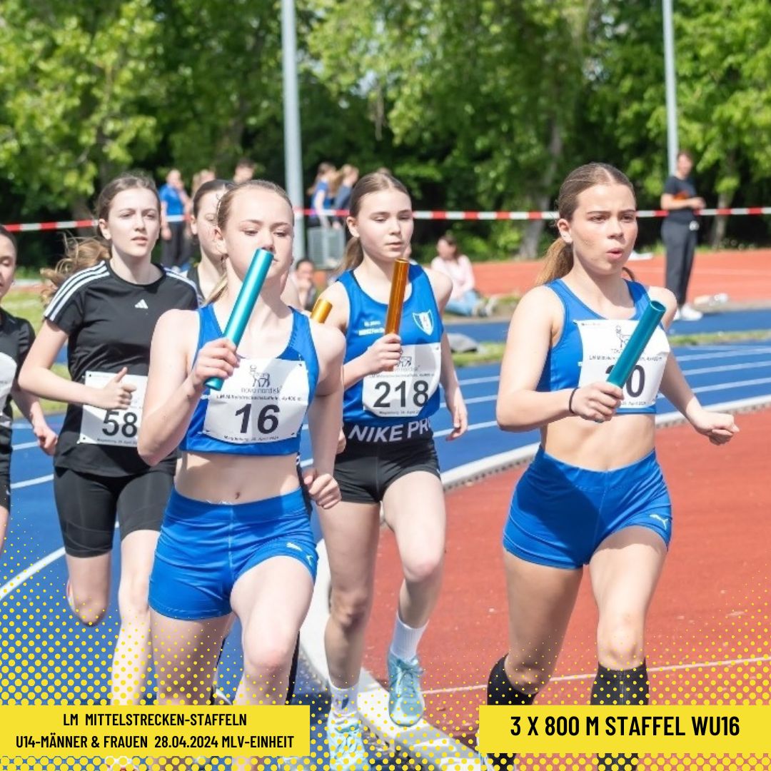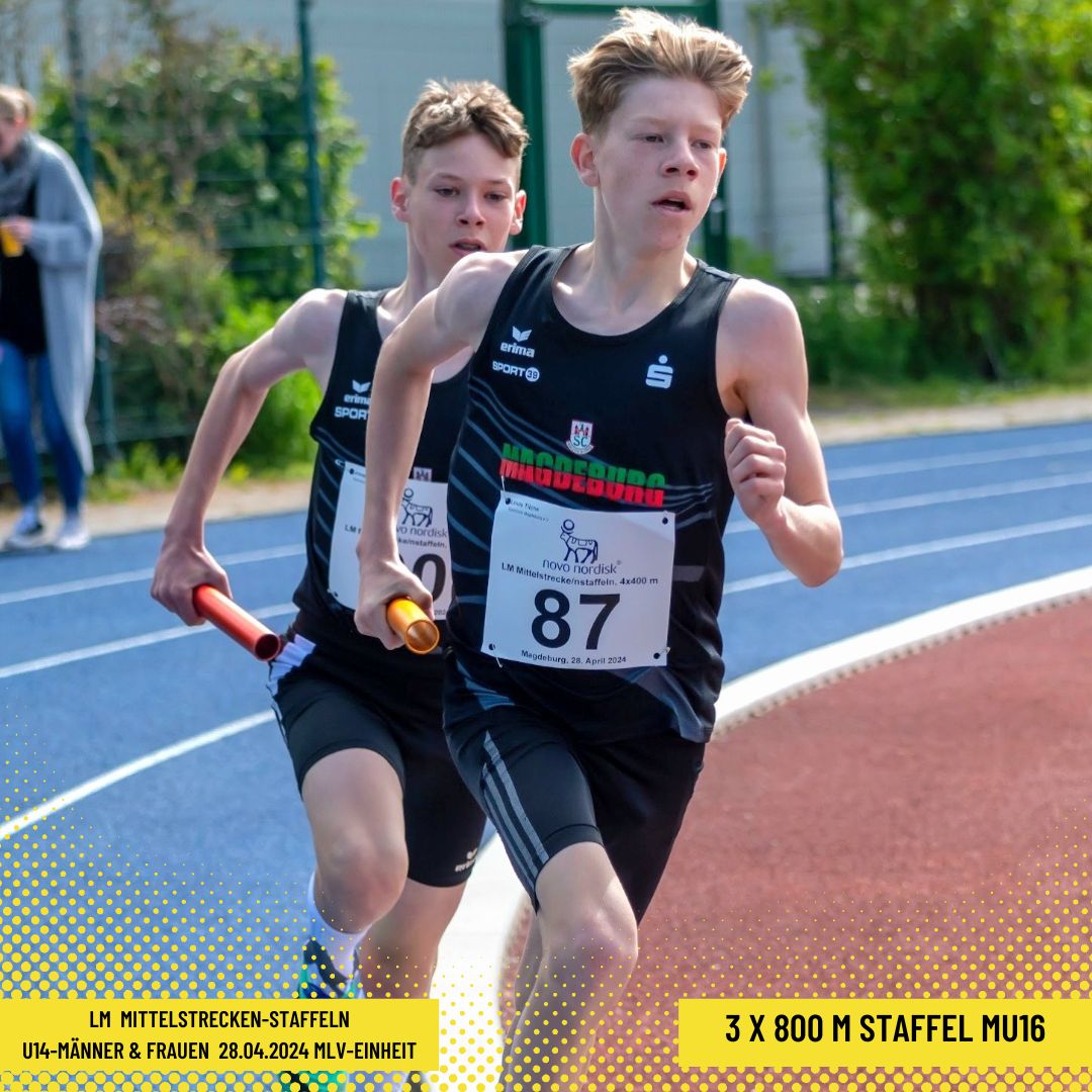 Am 28. April 2024 fanden die Landesmeisterschaften der Mittelstreckenstaffeln U14 bis zu den Aktiven als auch die Landesmeisterschaft über die Mittelstrecke mit Hilfe des sehr gut aufgestellten MLV-Einheit Trainer- und Kampfrichterteams auf Magdeburgs neu sanierter blauer Tartanbahn statt. Rund 100 Athleten sorgten für rege Staffelstabübergabeszenarien und duellierten sich um jeden Meter.