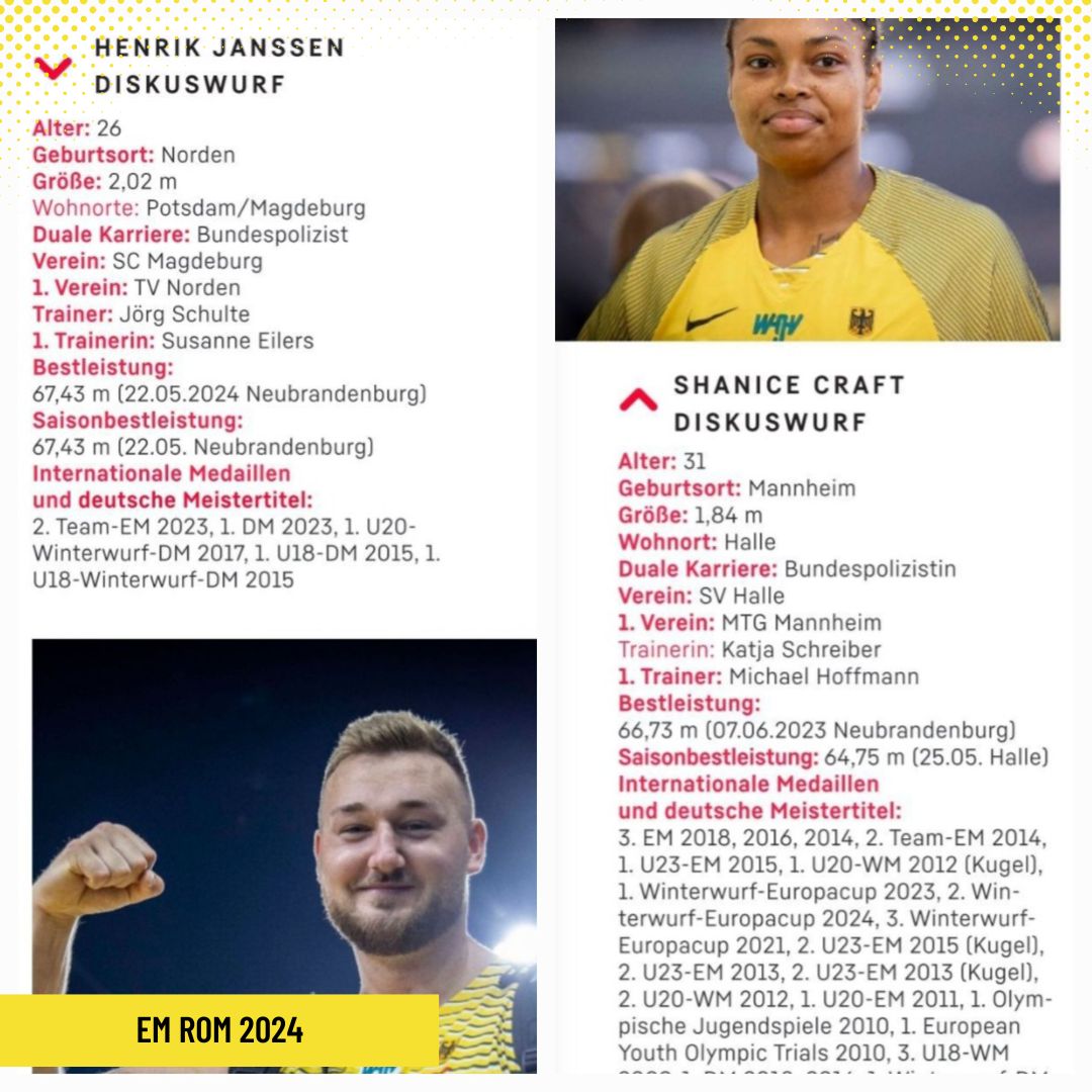 EM in Rom - Henrik Janssen & Shanice Craft im Diskuswurffinale