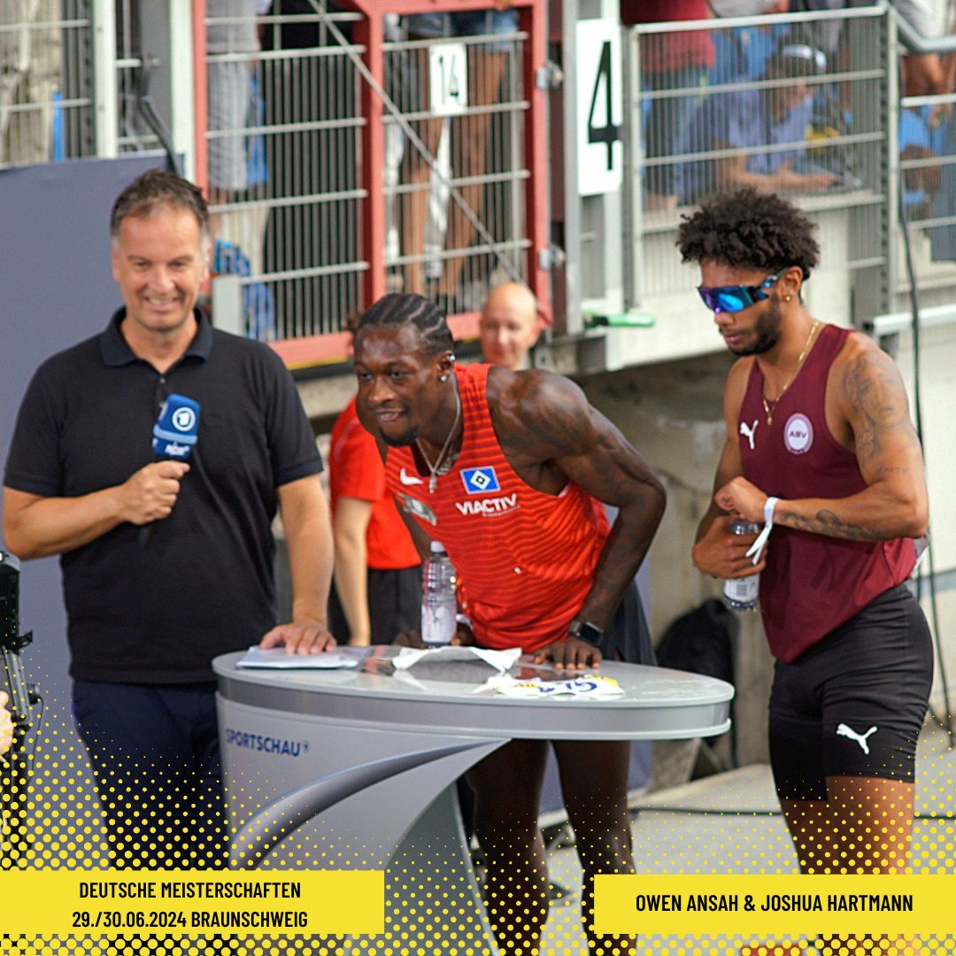 Der Samstag sorgte dabei für ein Stück Sportgeschichte - bei warmen Temperaturen und besten Wetterbedingungen flog Owen Ansah vom Hamburger SV in 9,99 s über die 100 m-Bahn und unterbot nicht nur die magische 10-Sekunden-Marke, sondern nebenbei purzelten der Deutsche Rekord, der Meisterschafts- und persönliche Hausrekord. Chapeau.