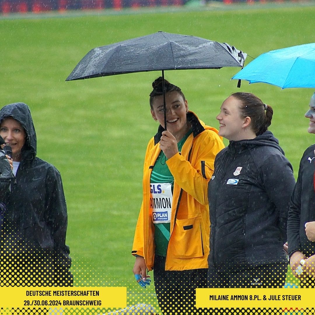 Im Kugelstoßen der Frauen standen Milaine Ammon vom SV Halle und Jule Steuer vom SC Magdeburg im regennassen Ring. Mit 15,89 m platzierte sich Milaine auf dem 8. Platz. Für Jule wurde es der wohl letzte offiziellen Meisterschaftswettkampf im Kugelstoßen, den sie sichtlich emotional im Nachgang durchlebte.