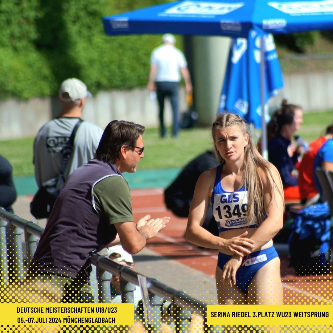 Der dritte und damit letzte Deutsche Meisterschaftstag (05.-07.Juli 2024) in Mönchengladbach endete mit weiteren Medaillen, Finalplatzierungen und persönlichen Bestleistungen für die U18- und U23-Athleten und Athletinnen aus Sachsen-Anhalt. Gleich zu Beginn belegte Siebenkämpferin Serina Riedel, welche bereits seit knapp drei Jahren am Bundesstützpunkt Mehrkampf in Halle trainiert, aber für den TSV Zeulenroda startet, Platz 3 im Weitsprung der WU23. Mit 6,22 m verfehlte sie ihre Bestleistung knapp.