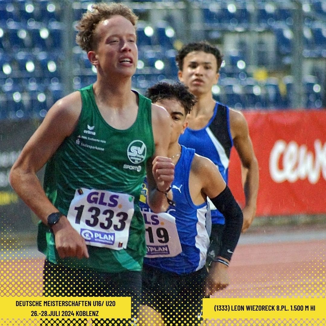 Am Ende des 2.Wettkampftages ging es in die finalen Rundenläufe. So belegte Allessa Hanke vom Haldensleber SC über die 1.500 m Hindernis in der W15 in 05:37,90 min den 5.Platz. Jonathan Toppel (SC Magdeburg), hatte sich einiges für die 800 m in der MU20 vorgenommen. In guter Position bis 200 m vor Schluss liegend, sollte seine offensive Taktik aufgehen, doch auf der Schlussgerade fiel er bis auf Rang 8 in 01:55,01 min zurück. Über die 1.500 m Hindernis der M15 hingegen löste der 8. Platz von Leon Wiezoreck (SV Halle) echte Emotionen bei Coach und Athlet aus. Zum erst zweiten Rennen und unter strömenden Regen angetreten, pulverisierte er seine alte Bestzeit von 04:53 min auf nun mehr 04:38,21 min.