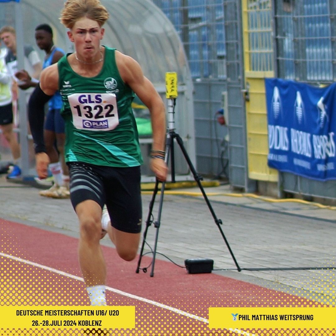 Im Weitsprung der M15 entschieden gleichfalls nur einzelne Sandkörner, über den Deutschen Meistertitel. Und so kämpfte sich Phil Matthias vom SV Halle mit einer starken Sprungserie bis auf 6,66 m an den Führenden Mica Schade (ÖG Elmstal Dörpen) heran, der seine 6,68 m aus dem 1.Versuch verteidigte. Aber auch Silber sieht chic.