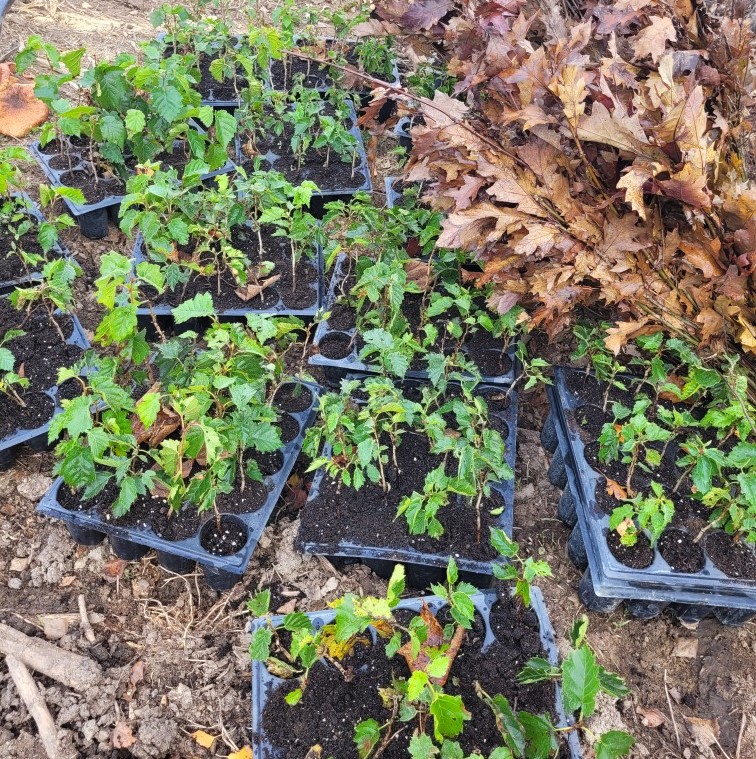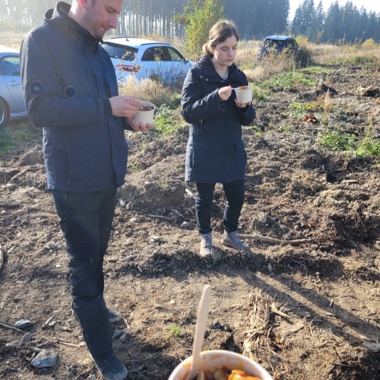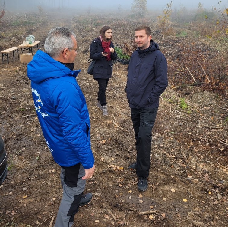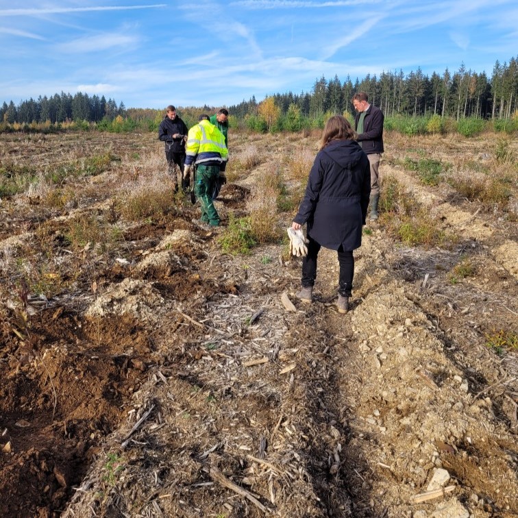 Der Revierförster gab einen kurzen Einblick in die Notwendigkeit der Aufforstung. Es werden vorwiegend heimische Baumarten verwendet, die unter den aktuellen, aber auch den künftigen (erwartbar höheren) Temperaturen gut gedeihen. Baumhasel, Rotbuche und weitere Arten werden in Mischaufforstung angepflanzt. In Monokulturen (wie sie in der Vergangenheit bedauerlicherweise angelegt wurden) können alle Bäume denselben Schädlingen zum Opfer fallen, womit der gesamte Wald gefährdet wäre. Da Bäume sich selbst nur mit etwa 10 cm pro Jahr ausbreiten, würde es ohne Anpflanzungen Jahrhunderte dauern, bis auf der bepflanzten Fläche von selbst wieder Bäume (jedoch vorwiegend, wegen des alten Bestandes rundum, wieder nur Fichten) wachsen würden.