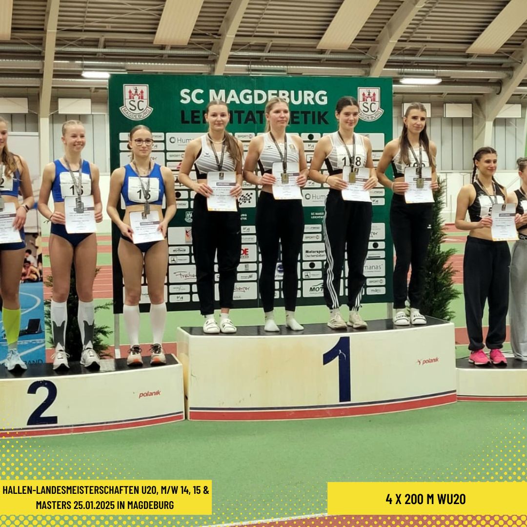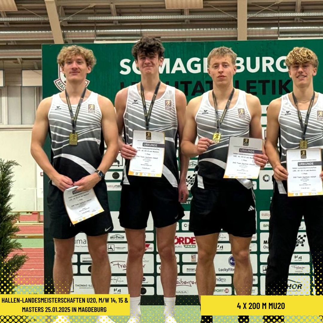 Zum Abschluss des Tages warteten die 4 x 200 m Staffeldamen und -herren auf ihre Einsätze. In der MU20 erzielte die Startgemeinschaft Team Sachsen-Anhalt um Phil Matthias, Lennard Noel Willner, Max Leon Graichen und Luca Plötz in 01:32,25 min eine ansprechende Zeit, die das Minimalziel Deutsche Meisterschaftsnorm erfüllte. Mit dem ein oder anderen Wackler weniger sollte noch Luft nach oben bleiben. Die jungen MU16-Herren des SV Halle um Milo Laganski, Jakob Günther, Benno Siebert und Phil Meier gewannen in 01:41,48 min und treten der Konkurrenz am kommenden Wochenende zur Mitteldeutschen Hallen-Meisterschaft der U16 bis U20 in Chemnitz als Landesmeister entgegen. Das gleiche betrifft die WU20 Damen der Startgemeinschaft Team Sachsen-Anhalt um Valentina Krug, Hannah Weinrich, Mary Lou Kretzschmar und Charlotte Zeigermann, die in 01:43,48 min eine erste Kostprobe ihres Könnens zeigten. Wir sind gespannt, welche weiteren Ergebnisse die sachsen-anhaltinischen Athleten und Athletinnen in Chemnitz (01.02.2025) aufbieten werden.