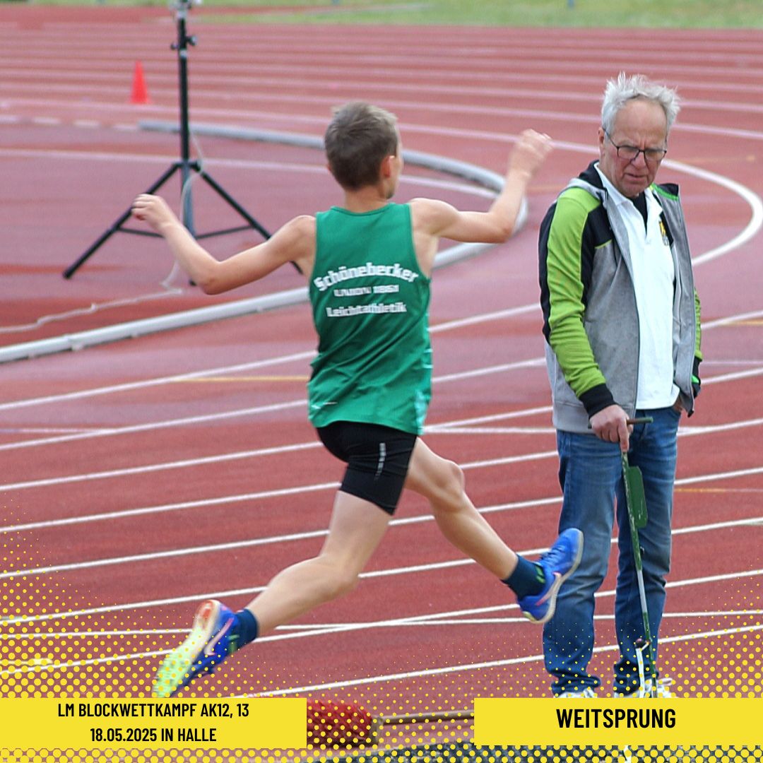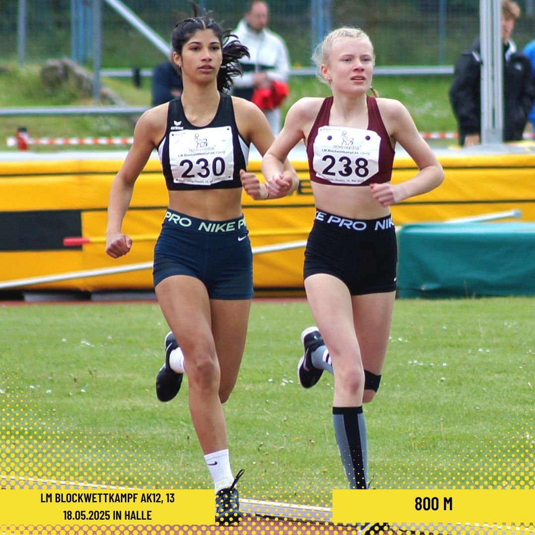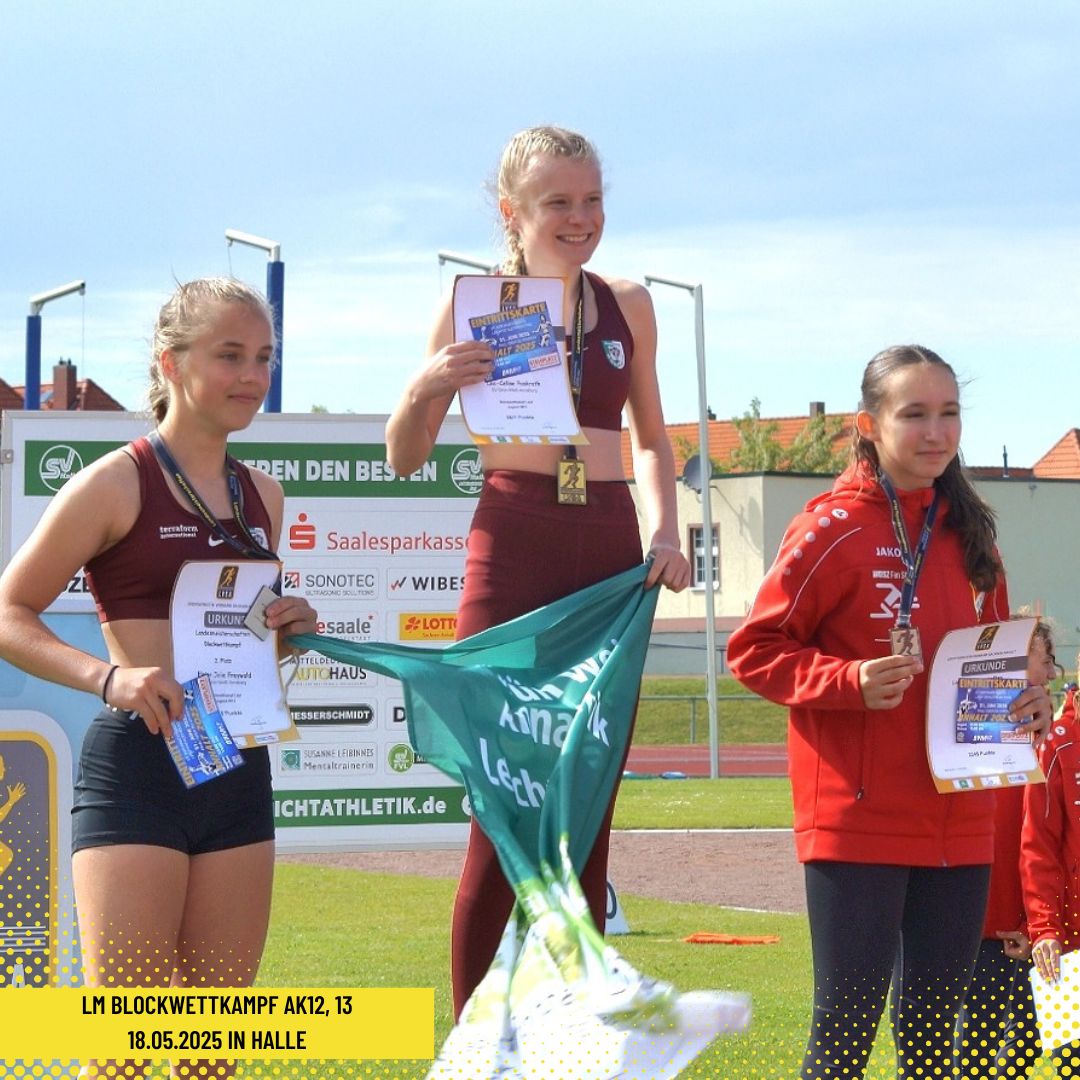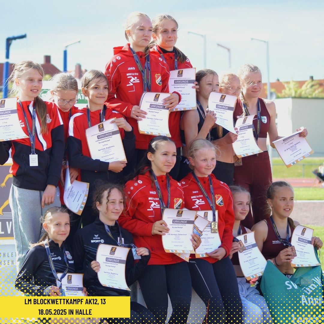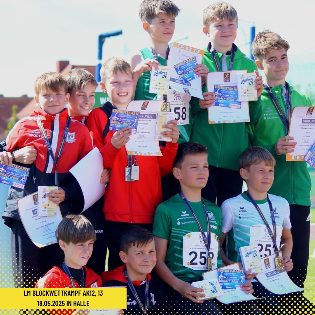 Am 18. Mai 2025 fanden parallel zum zweiten Wettkampftag der offenen Mitteldeutschen Mehrkampf-Meisterschaften die Landesmeisterschaften im Blockwettkampf Lauf der 12- und 13-Jährigen in Halle statt. Auch hier führte der Förderverein des SV Halle die ausrichtende Hand. Trotz der Herausforderung, des sich ständig wechselnden Wetters, gelang den jungen Nachwuchsathleten ein guter Wettkampf.