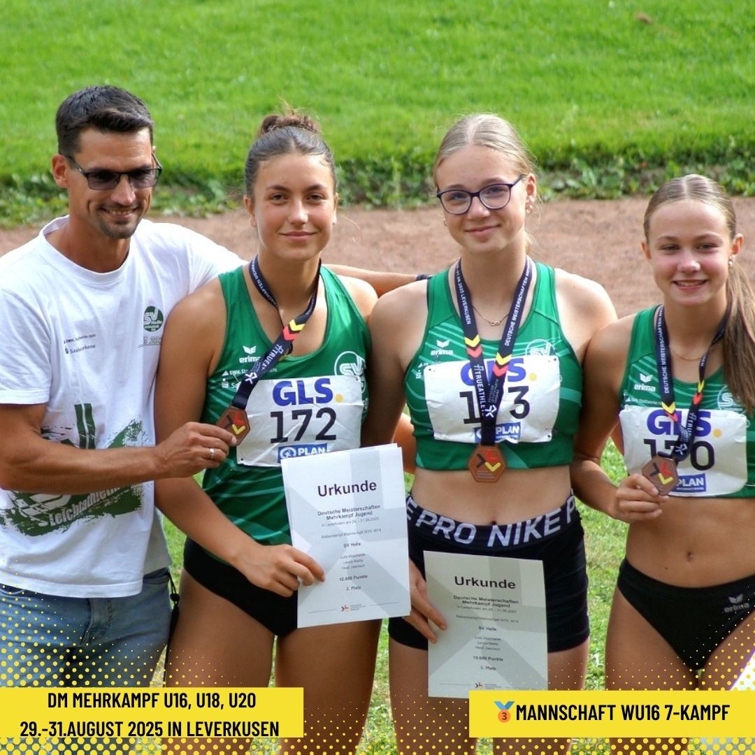 Mit großen Feldern fanden die Deutschen Jugend-Mehrkampf-Meisterschaften vom 29. bis 31.08.2025 auf der Leverkusener Fritz-Jacobi-Sportanlage statt. Rund 250 Athletinnen und Athleten aus 121 Vereinen hatten für die Titelkämpfe gemeldet. Aus Sachsen-Anhalt waren 15 Sportlerinnen und Sportler vom SV Halle angereist. Den Auftakt machten am Freitag zunächst die Athleten der männlichen und weiblichen U20 sowie der M/W14 und M15.