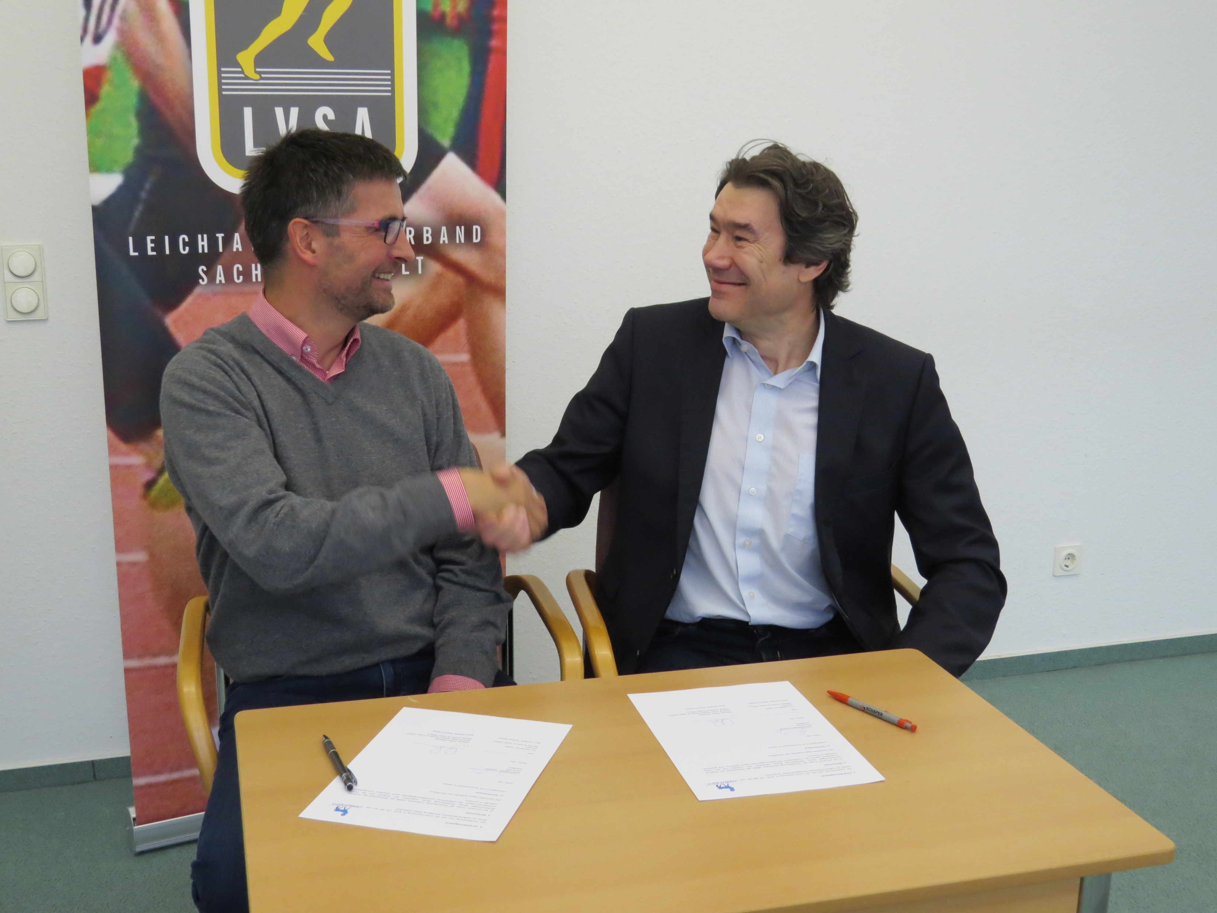 Unser Hauptsponsor, die Novo Nordisk Pharma GmbH, hat die Sponsoringvereinbarung mit unserem Leichtathletikverband um ein weiteres Jahr verlängert. Herr Thomas Rieke-Holstein von der Novo Nordisk Pharma GmbH und unser Präsident Herr Gerry Kley unterzeichneten diese Vereinbarung anlässlich des 2. Gesundheitssporttages des LVSA am 26.11.2016 in Schönebeck-Bad-Salzelmen.