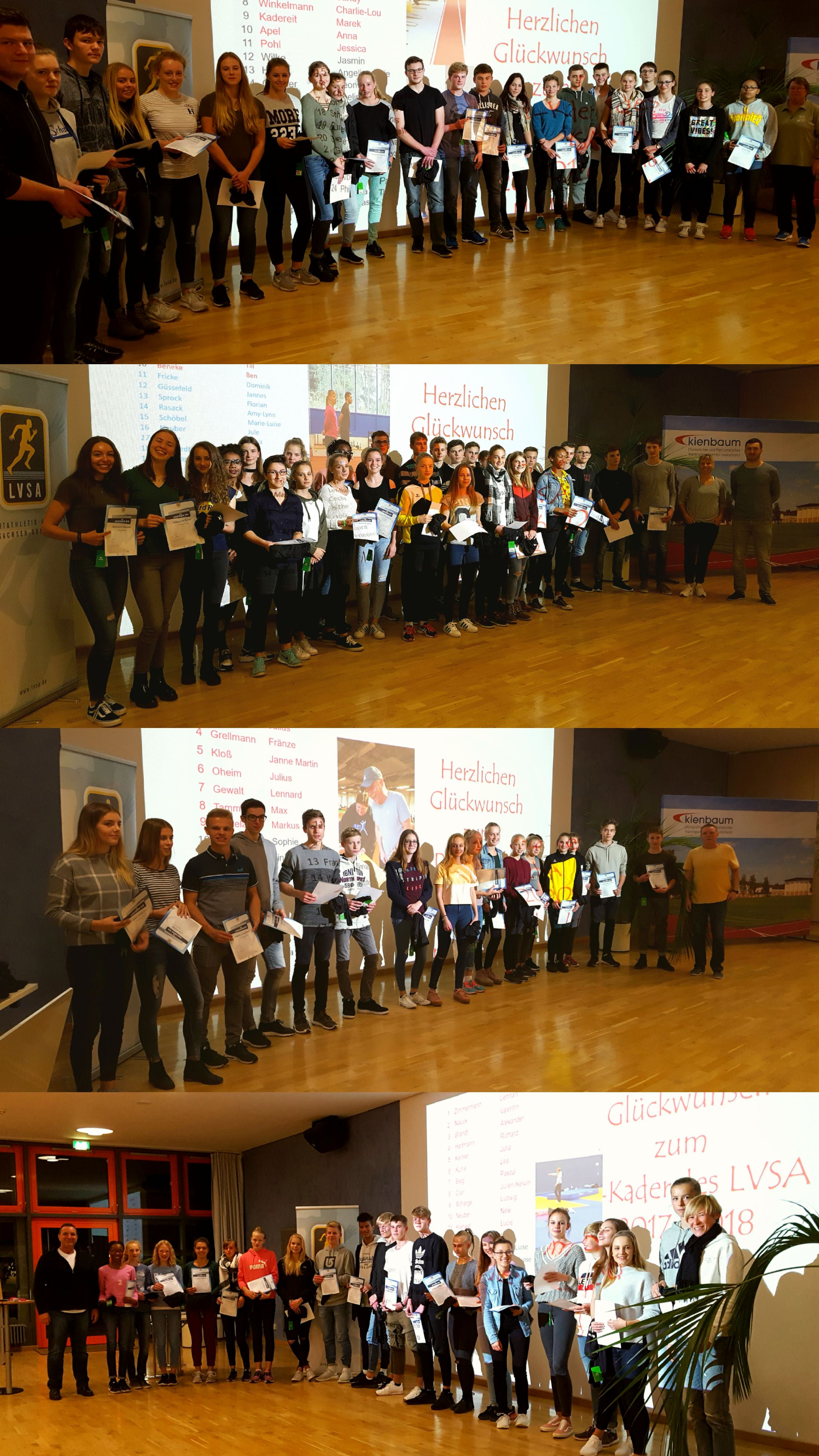 Vom 27.10. bis zum 29.10.2017 traf sich der künftige Landeskader 2018 des Leichtathletik-Verbandes Sachsen-Anhalt im olympischen und paralympischen Trainingszentrum in Kienbaum. In einer Oase aus Ruhe mit qualitativ hochwertigen Trainingsstätten trainierten die jungen Athleten/innen der Altersklassen 13/14 bis 17/18 unter der fachkompetenten Anleitung der Blocktrainer/innen. In den Blöcken Sprint, Wurf/Stoß, Lauf/Gehen und Sprung/Mehrkampf wurden zudem sportmotorische Testverfahren durchgeführt, die den Tests des Deutschen Leichtathletik-Verbandes entsprechen. Alle Athleten/innen hatten nach eigenen Aussagen Spaß und Freude im gegenseitigen Mit- und Gegeneinander.