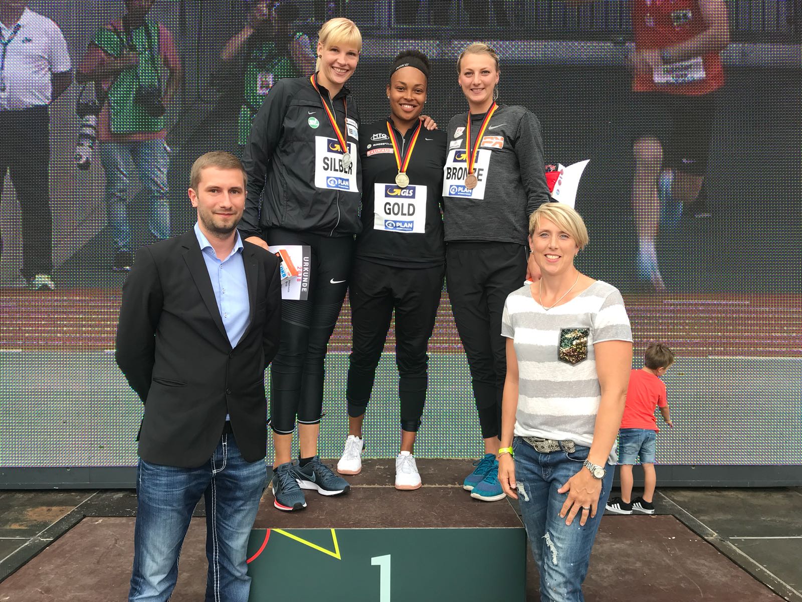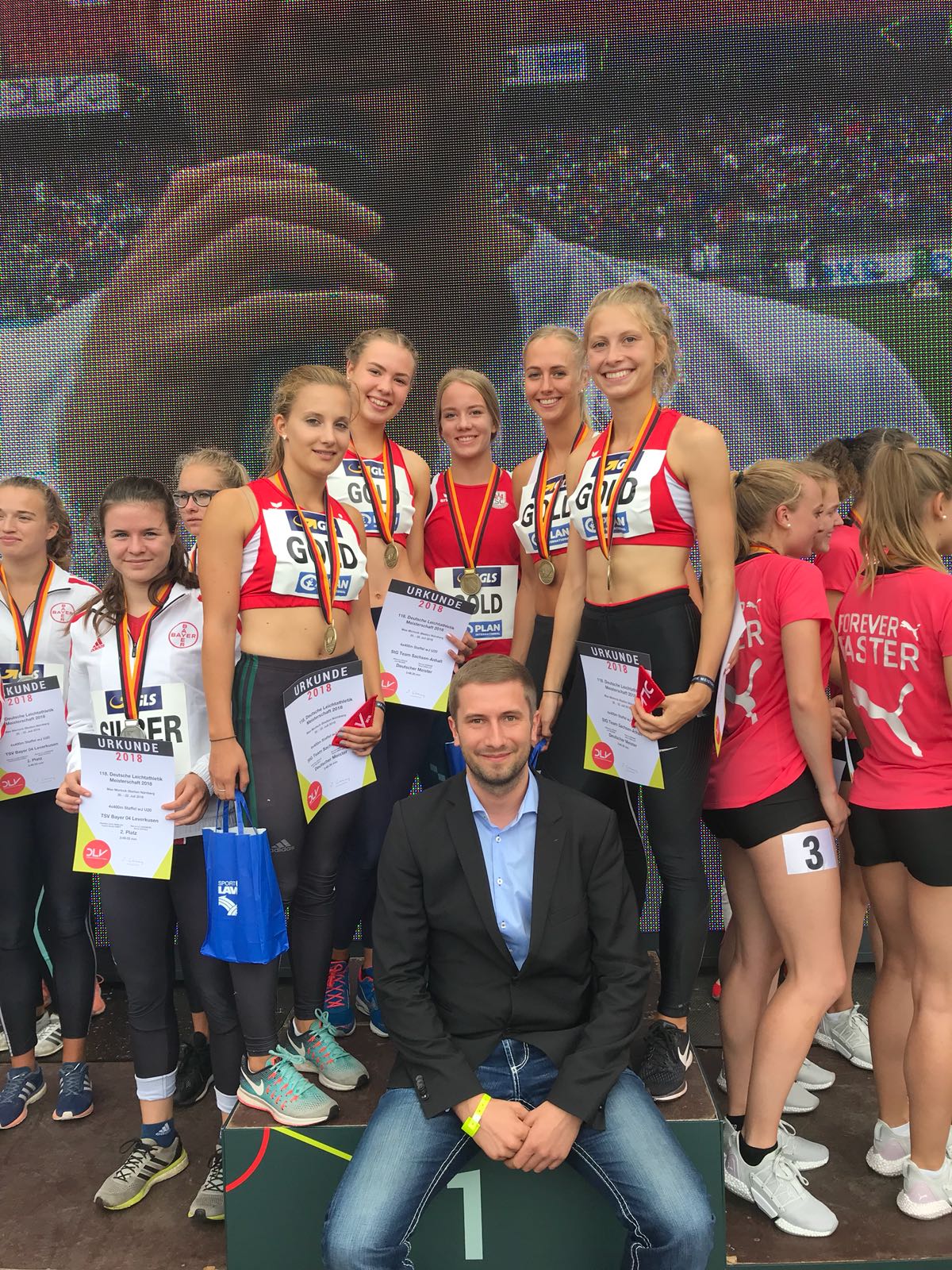 Die noch junge 4 x 400 m Staffel der StG Team Sachsen-Anhalt sicherte sich in 03:48,39 min die Goldmedaille in der Besetzung Mikkeline Braun, Marissa Brömme, Jule Neuber und Maren Smoljuk. Eine ebenso wertvolle Medaille erkämpfte sich Nadine Müller vom SV Halle im Diskuswurf. Mit einer Saisonbestweite von 62,73 m zum richtigen Zeitpunkt landete sie auf dem 2. Platz. Die Nominierung für die EM in Berlin dürfte ihr damit geglückt sein. Auf Rang 3 landete mit 62,65 m Anna Rüh vom SC Magdeburg. Auch sie hat die EM-Norm bereits erfüllt und hätte mit ihrem dritten Platz an diesem entscheidenden Wochenende eine Chance auf den EM-Zug gen Berlin gehabt, wäre nicht Claudine Vita als Viertplatzierte bereits durch den DLV gesetzt gewesen und hätte Shanice Craft diesen Wettkampf nicht mit 62,91 m gewonnen. Im Kugelstoßen der Damen belegte Sara Gambetta vom SV Halle einen wichtigen Medaillenplatz, den es für die EM-Nominierung noch gebraucht hat. Mit 17,79 m wurde sie Dritte und erbrachte zudem einen noch ausstehenden Leistungsnachweis. Im Kugelstoßen der Männer stieß Dennis Lewke vom SC Magdeburg 19,32 m. Diese Weite bedeutete Rang vier. Ebenso auf Rang vier landete in einem Zentimeterkrimi sein Vereinskollege Martin Wierig im Diskuswurf. Er hat die EM-Norm von 64,00 m bereits früh zu Saisonauftakt geworfen. Jedoch konnte er sich im Quintett der Normerfüller an diesem Wettkampfwochende leider nicht durchsetzen. Mit 63,72 m fehlten ihm 21 Zentimeter auf den glücklichen Dritten, Robert Harting, der nun seine Tasche für Berlin packen wird. David Wrobel, ebenso SC Magdeburg, hatte sich gleichfalls Hoffnungen auf einen EM-Platz ausgerechnet. Als Fünftplatzierter mit einer Weite von 62,67 m sollte es jedoch noch nicht reichen. Platz 6 ging über die 110 m Hürden in 14,02 s an den sich stets für ein DM-Finale qualifizierenden Julian Marquardt vom SV Halle. Im Vorlauf über 110 m Hürden stand zudem ein noch im U23-Bereich startender Athlet vom VfB Germania Halberstadt. Konstantin Rust, welcher vor einer Woche neuer U23-Meister wurde, verpasste das Finale nur knapp. Er stellte jedoch mit 14,23 s eine neue persönliche Bestleistung auf und landete damit auf dem 9. Platz. Im Kugelstoßen der Damen belegte Josefine Terlecki vom SV Halle mit einer Weite von 16,90 m Rang 7. Bereits fest mit der Heim-EM in Berlin (07.-12.08.2018) kann Cindy Roleder (SV Halle) über die 100 m Hürden planen. Leider konnte sie im Finale der besten Acht nicht um eine DM-Medaille kämpfen, da sie im Vorlauf einen Fehlstart verursachte und der zur Disqualifikation führte.