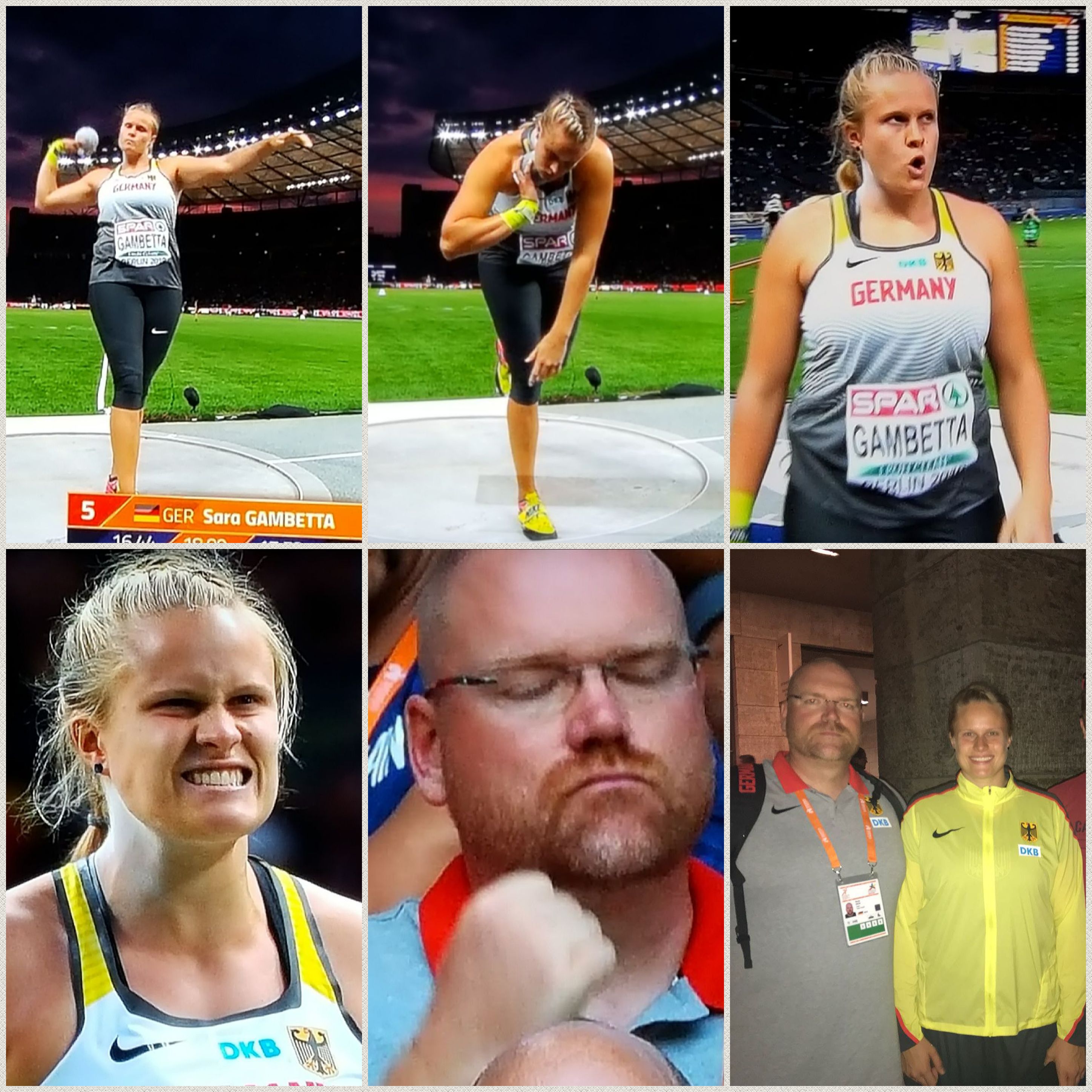 Mit 19 Medaillen (6/7/6) bewiesen die Athleten/innen schließlich auch, dass sie auf den Punkt fit sein können. Unter ihnen mischten drei Athletinnen aus Sachsen Anhalt mit, nachdem diese bereits drei Wochen zuvor zur DM in Nürnberg für den LVSA glänzten. Den erfolgreichen Anfang machte am dritten Wettkampftag (08.08.2018) Sara Gambetta vom SV Halle im Kugelstoßen. Mit Saisonbestleistung von 18,13 m belegte sie einen sehr guten 5. Platz. Die Freude und Erleichterung waren ihr als auch ihrem Trainer Rene Sack ins Gesicht geschrieben (s. Foto). Die Silbermedaille ging in diesem bis zum letzten Durchgang offenen Wettkampf an Christina Schwanitz (19,19 m). Am darauffolgenden Wettkampftag legte Cindy Roleder, ebenfalls vom SV Halle, über die 100 m Hürden nach. Mit Saisonbestleistung von 12,77 s stürmte sie auf Rang 3, knapp geschlagen von ihrer Dauerkonkurrentin Pamela Dutkiewicz (12,72 s). Herzlichen Glückwunsch auch an ihren Trainer Wolfgang Kühne. Am 6. Wettkampftag verdrängte die Kroatin Sandra Perkovic im Diskuswurf der Damen die lange führende Nadine Müller vom SV Halle noch auf den Silberrang. Mit 63,00 Metern war ihr und abermals Trainer Rene Sack, die Freude aber nicht mehr zu nehmen (s. Foto). Auf den Rängen drei und vier komplettierten die deutschen Mitstreiterinnen Shanice Craft (62,46 m) und Claudine Vita (61,25 m) das sehr gute Ergebnis.