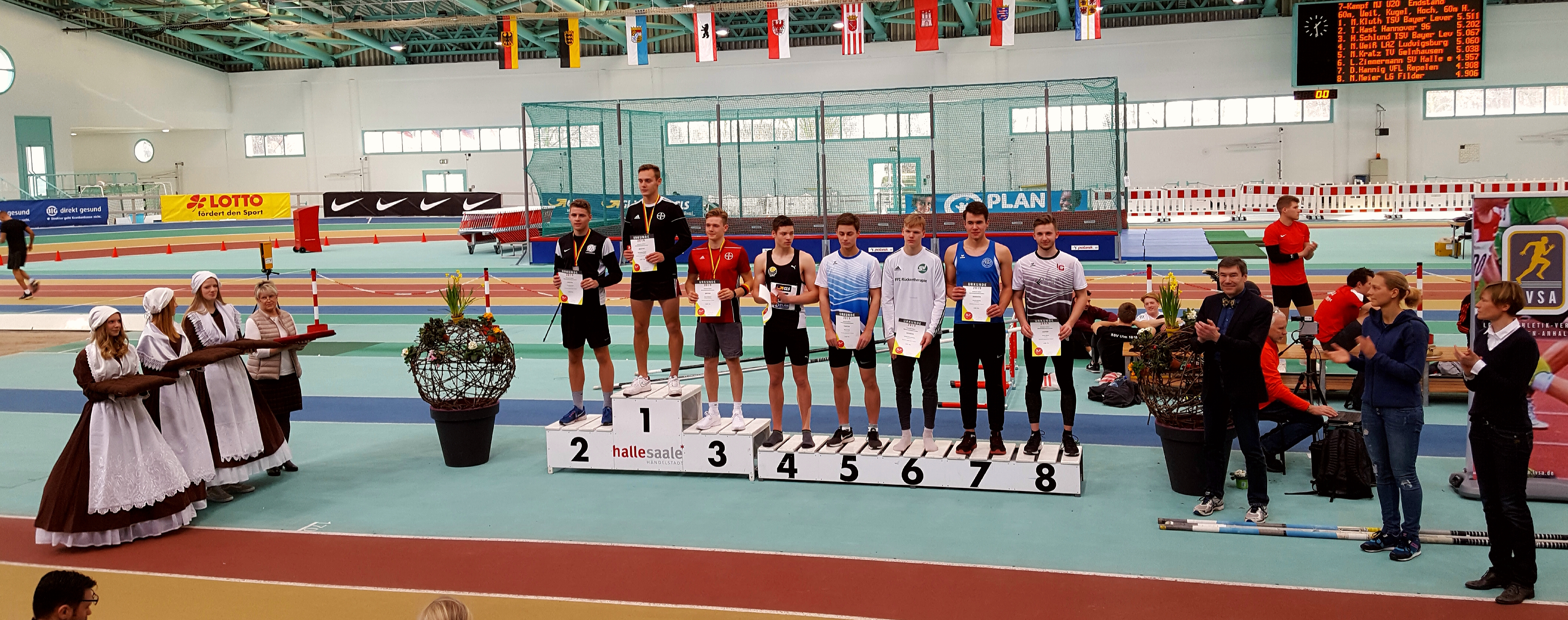 Vom 26. bis 27. Januar 2019 fanden die 15. Deutschen Hallen-Mehrkampfmeisterschaften diesmal in der Brandbergehalle in Halle (Saale) statt. In der weiblichen Jugend U20 gelang Lucie Kienast vom SV Halle ihr erster Goldclou im Hallen-Fünfkampf. Mit einem weiten Satz von 6,08 m im Weitsprung und einer für sie sehr guten Zeit von 2:23,68 min über 800 m konnte sie ihren Heimvorteil doch noch nutzen und verwies die Konkurrenz schließlich knapp auf die nachfolgenden Plätze. 3.683 Punkte bedeuteten zugleich eine persönliche Bestleistung für sie. Platz zwei ging mit 3.662 Punkten an Lara Kohlenbach vom Königsteiner LV. Rang drei erkämpfte sich Wiebke Oelgardt vom SV Werde Bremen mit 3.581 Punkten. In der männlichen Jugend U20 belegte Lennart Zimmermann vom SV Halle mit 4.957 Punkten Rang 6 im Hallen-Siebenkampf. Ebenfalls auf Platz 6 landete Tom-Lucas Greiner vom Erfurter LAC mit 5.415 Punkten im Siebenkampf der Männer. Die stark aufgestellte Männerkonkurrenz dominierte überraschend der Frankfurter Andreas Bechmann mit 6.017 Punkten. Mit sieben Bestleistungen in sieben Disziplinen überflügelte er die zuvor höher eingeschätzten 8.000-Punkte-Zehnkämpfer. So landeten das Ulmer-Trio Tim Nowack (5.903 Pkt.), Manuel Eitel (5.840 Pkt.) und Mathias Brugger (5.797 Pkt.) auf den Plätzen zwei, drei und vier. Herzlichen Glückwunsch an alle Medaillenträger.