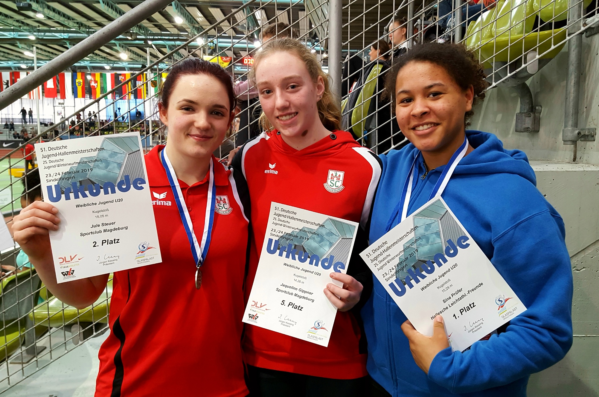 Am 23./24.02.2019 fanden die 51. Deutschen Hallen-Jugendmeisterschaften der U20 Athleten/innen als auch die 25. Deutschen Winterwurfmeisterschaften der U18- und U20-Athleten/innen im sonnigen Sindelfingen statt. Aus Sachsen-Anhalt hatten insgesamt 50 Teilnehmer/innen aus fünf verschiedenen Vereinen ihre Meldungen abgegeben. Hierbei sorgten einmal mehr die wurfaffinen Athleten/innen der Halleschen LA-Freunde (HLF), des SC Magdeburg (SCM), des SV Halle (SVH) sowie des SV 1885 Teutschenthal/WLT im Kugelstoßen, Speer-, Diskus- und Hammerwurf für freudige Trainergesichter.