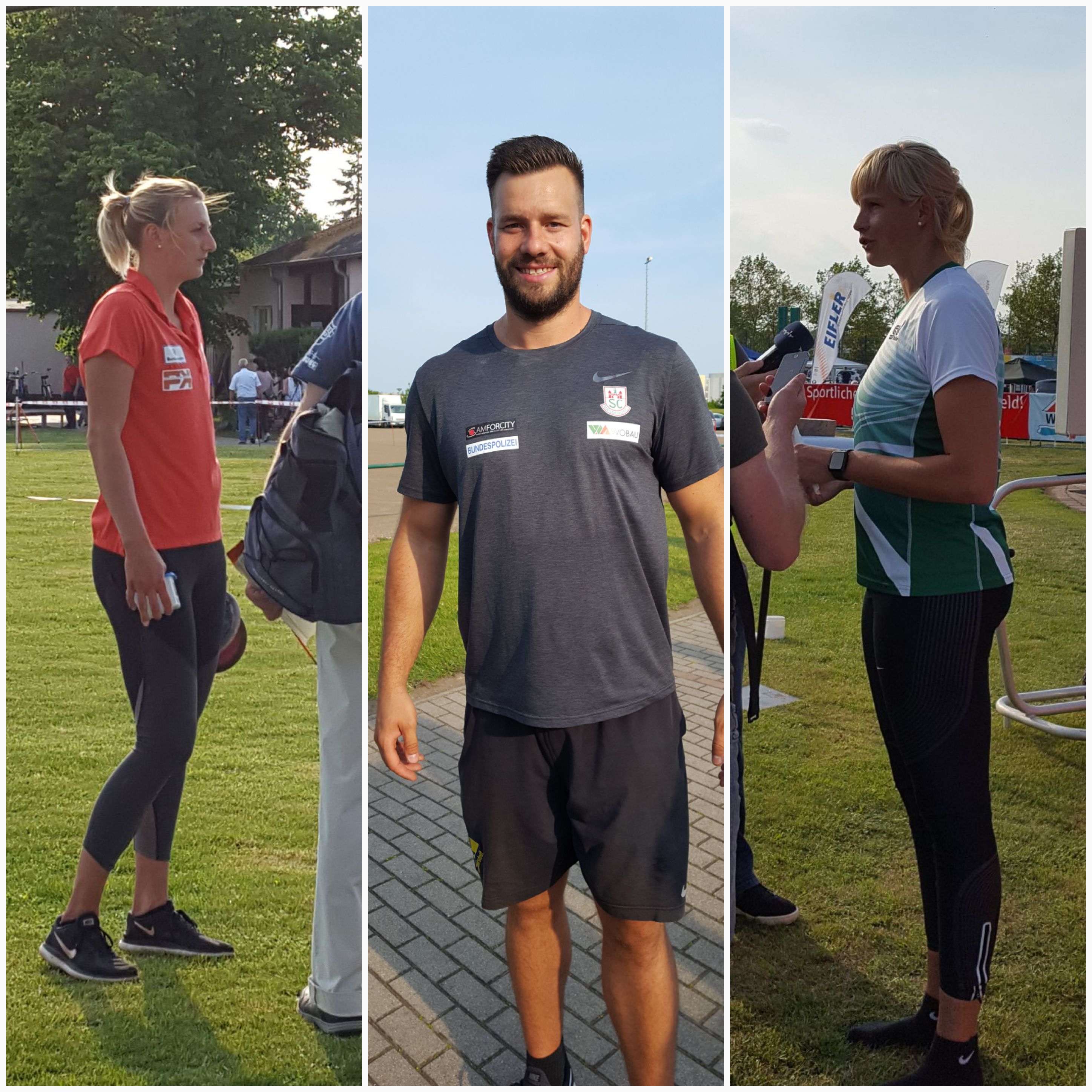 In der weiblichen U18 erfüllte Jaqueline Gippner vom SC Magdeburg mit 16,64 m die vom DLV gefordete U18 EYOF-Norm von 15,80 m. Im Kugelstoßwettbewerb der WJU20 stieß Jule Steuer, ebenfalls vom SC Magdeburg, mit 15,08 m die U20 EM-Norm von 15,00 m. Im Speerwurf der WJU20 ließ Leonie Tröger von den Halleschen LA-Freunden ihren Speer über die U20 EM-Norm von 51,00 m fliegen. Ihr 600 g Speer landete bei 52,40 m. Im Diskuswurf der Männer zeigten die Magdeburger Diskusriesen Martin Wierig und David Wrobel, dass Schönebeck immer eine Reise wert ist. Mit 66,04 m siegte Martin knapp vor David, der mit 65,86 m gleichfalls die WM-Norm für Doha erfüllen konnte. Merten Howe vom SV Halle warf seinen 2,0 kg Diskus das erste Mal über 60,00 m und erfüllte mit 60,39 m sogar die U23 EM-Norm, die bei 59,00 m liegt. Im Speerwurf der MJU20 zeigte Gordon Schulz (SC Magdeburg) eine beeindruckende Frühform. Mit 74,51 m überwarf er die geforderte U20 EM-Norm von 68,50 m deutlich mit seinem neuen 800 g Speer. Im Diskuswurfwettbewerb der Damen überwarf Nadine Müller vom SV Halle mit 64,37 m die WM-Norm. Auch Anna Rüh vom SC Magdeburg konnte diese mit 61,50 m überbieten.