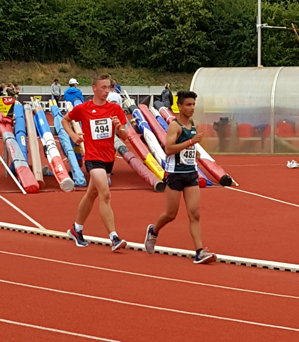 Den goldenen Anfang machte Jassam Abu El Wafa (s. Fotos) vom SV Halle im 3.000 m BG. In 16:11,84 min ging er zudem eine neue persönliche Bestzeit. Die zweite Goldmedaille eroberten sich die jungen Damen des SC Magdeburg in der 4 x 100 m Staffel. Als Titelverteidiger angereist und auf der nicht optimalen Bahn 1 im Finale laufend, bewiesen sie einmal mehr ihren Kampfgeist. Mit blitzsauberen Stabwechseln zwischen Luna Nowack, Deborah Hartmann, Christina Onwu Akomas und Alyiah Njock (s. Fotos) stürmten sie in 47,57 s zusätzlich zu einer neuen Bestzeit. Eine silberne Medaille eroberte sich Jadon Henze (s. Fotos) von Lokomotive Aschersleben im 3.000 m BG. In 16:22,01 ging auch er zu einer neuen Bestzeit. Einen weiteren zweiten Platz gab es für Emmanuel Agbo Anih (s.Fotos) vom SV Halle im Diskuswurf. Mit 53,46 m musste er sich lediglich seinem Dauerrivalen Lukas Schober von der SG Weißig 1861 (55,99 m) geschlagen geben. Ebenfalls Platz 2 erzielte Arne Nebelung (s. Fotos) vom SC Magdeburg im Speerwurf. Er warf seinen 600 g Speer auf 53,95 m. Über die 80 m Hürden sah das Bild der drei erstplatzierten Damen dem der Mitteldeutschen Meisterschaft in Mittweida ähnlich. Lediglich die Hürdenzeiten wurden nochmals in persönliche Bestzeiten umgewandelt. Auf Platz 1 landete Alina Sophie Vollert (LAC Erdgas Chemnitz) in 11,31 s, gefolgt von Christina Onwu Akomas (s. Foto) vom SC Magdeburg (11,46 s) und Jule Elisabeth Döring vom SV Halle, die sich in 11,54 s über die Bronzemedaille freute. Einen zusätzlichen vierten Platz erkämpfte sich Emmanuel Agbo Anih im Kugelstoßen. Mit 15,68 m verfehlte er das Siegertreppchen um 10 cm. Im 3.000 m Bahngehen der W15 belegte Lena Schneider vom SV Halle Rang 4. Sie ging 17:50,72 min. Ebenfalls Platz 4 erzielte Kajsa Zimmermann vom SV Halle mit 13,37 m im Kugelstoßen. Sie wagte einen Doppelstart parallel mit dem Wettkampf im Weitsprung. Der Sportstättenwechsel kostete sie an diesem Tag jedoch die notwendige Konzentration, um an ihre bereits gezeigte Stoßweite von 14,85 m aus dem vorangegangenen Wochenende heranzukommen. Im Weitsprung sprang sie gute 5,59 m, die Rang sechs bedeuteten. Zwei fünfte Plätze gingen jeweils an die weibliche und männliche 4 x 100 m Staffel des SV Halle. Die Besetzung Luzie Espenhahn, Kajsa Zimmermann, Jule Döring und Luise Beutel benötigte 48,87 s. Die jungen Männer liefen als vorlaufschnellste Staffel in der Besetzung Emiel Hope Leibinnes, Christof Pohl, Martin Gärtner und Karl Müller 45,17 s. Zudem wurde Karl über die 300 m in 37,64 s Fünfter. Auf einem guten 6. Platz landete Martin Gärtner (SV Halle) im Weitsprung mit 6,21 m.
