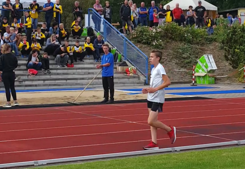 Exemplarisch seien u. a. einzelne persönliche Bestleistungen sowie Platzierungen erwähnt: Maximilian Lehmann (s. Foto) vom 1. LAC Dessau eroberte sich mit 1,59 m im Hochsprung sehr gute fünf Punkte (2. Platz). Im Kugelstoßen beförderte Joke Mika Maly vom SV Lok Aschersleben seine Kugel auf 13,39 m und unterstütze so das Team Sachsen-Anhalt mit weiteren fünf Punkten. Mit zwei Siegen, die jeweils sechs Punkte bedeuteten, erzielte Anna Hinkelmann vom Arneburger LV auch die beste weibliche Leistung der Sachsen-Anhaltinischen Auswahlmannschaft. Über 75 m sprintete sie 9,89 s. Über die 800 m Distanz lieferte sie blitzsaubere 02:19,16 min ab. Dicht dahinter ordnete sich Clara Schiller vom Haldensleber SC auf dem 2. Platz ein und steuerte weitere fünf Punkte für das Team Sachsen-Anhalt bei. Mit 02:21,73 min kam sie ihrer persönlichen Bestzeit von 02:20,67 min sehr nah. Die beste männliche Leistung eroberte sich in einer wahrlich flotten Zeit Lukas Rosenbaum (s. Foto) vom Stendaler LV über die 2.000 m BG. Mit 09:28,99 min sollte noch kein Geher in der Geschichte des LVU14 schneller gewesen sein. In der weiblichen Jugend siegte über 2.000 m BG Angelina Pauline Sommer vom SSV Eisleben in 11:37,87 min ebenso deutlich.