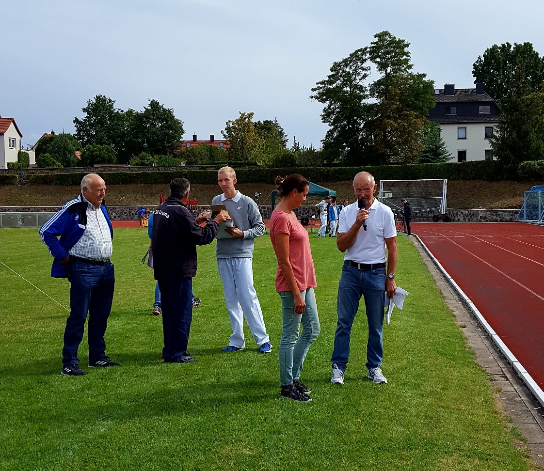 Ein großes Dankeschön gehört dem geamten U14-Auswahlteam Sachsen-Anhalt 2019 für die gezeigten sportlichen Leistungen, dem Kampfrichterteam um Kampfrichterwart Benjamin Schwede, dem Ausrichter-Team des TSV Leuna und schließlich dem Ehrengast Uta Rohländer (s. Foto). Sie wurde u. a. 1997 Weltmeisterin mit der 4 x 400 m Staffel des DLV und setzte ihre ersten sportlichen Laufschritte unter Trainerurgestein Siegfried Zschiegner beim Leunaer Sportverein.